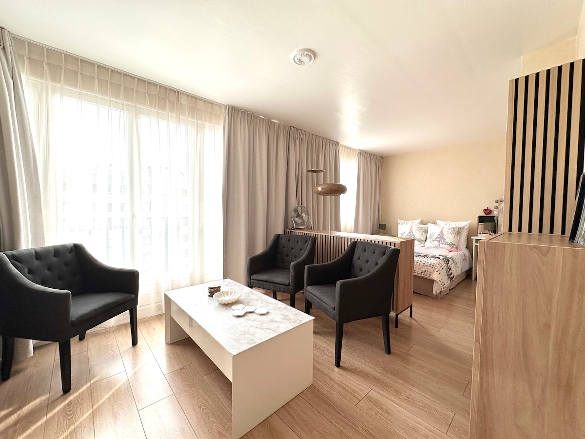 Superb premium flat, fully equiped flat of 36 m2, with lift on the 5 floor and one floor with stair ,US kitchen, with washing machine( can dry only half machine), dishwasher, Nespresso machine, internet, air cond, one bedroom withOne Queen/size bed(1,80x200) and in the living room, a brand new sofa convertible bed(1,70x200)Fully refurbished 2020.