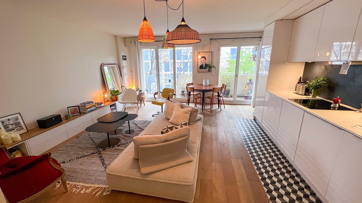Bel appartement lumineux de 46m2 + balcon de 10m2 situé dans le quartier Jourdain, à deux pas du parc des Buttes Chaumont. Parfait pour un couple ou une personne seule souhaitant profiter du calme du quartier et de la beauté du parc, tout en étant à proximité des attractions de la ville. L’appartement dispose d’une chambre, d’une salle de bain, d’un grand salon, d’une cuisine américaine toute équipée, et d’un balcon filant orienté Sud. Le ménage est effectué avant et après chaque voyageur.