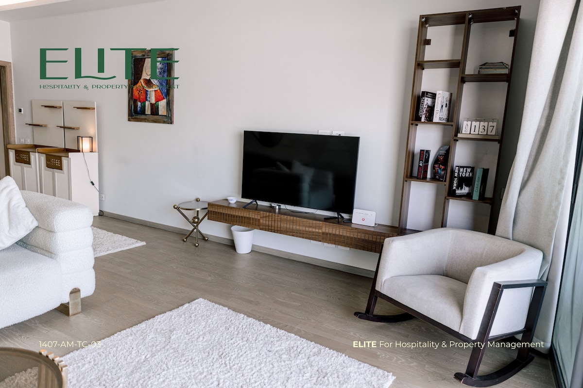 Your Manor in the Sky Welcome to one of our ELITE's, an expansive and exquisitely designed three-bedroom residence in the prestigious Aeon Towers. This is a home that combines the space and elegance of a manor with the breathtaking views and modern conveniences of high-rise living. Perfectly suited for families or groups, this apartment offers a sophisticated retreat with direct access to the vibrant lifestyle of the Mall of Arabia and a host of exclusive, resort-style amenities.