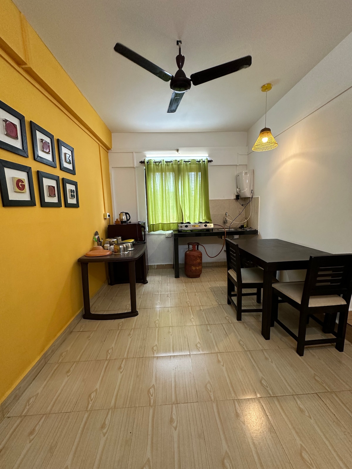 Cette maison loin de chez vous est un studio bien équipé pour les couples. L'endroit est parfait pour les touristes à la recherche de courts séjours ainsi que pour les personnes qui cherchent à travailler à domicile. L'appartement dispose d'un générateur de secours 24X7 et d'une connexion Wi-Fi haut débit de 100 Mbps. L'emplacement est central sur la côte touristique de Goa Nord et toutes les plages sont facilement accessibles en 10-20 minutes en voiture. Profitez d'un logement élégant et central.