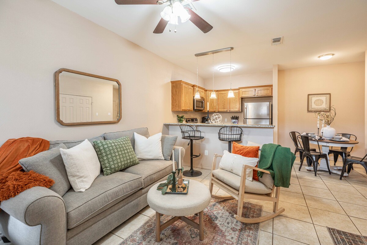 Explorez Redbud Retreat, un havre de paix de 1435 pieds carrés 2 CH/2 SAL, un havre de paix dans une rue privée tranquille. Doté d'une excellente connexion Wi-Fi, d'une nouvelle télévision intelligente de 55 pouces et d'une suite parentale avec un lit King Size de luxe. Idéalement situé à côté de Buffalo Gap Road, à quelques pas de Redbud Park et du YMCA. À 3,1 miles de Hendrick South et à 4,6 miles de Hendrick North. Profitez du confort moderne, d'une cuisine entièrement équipée, d'un espace repas/travail, de deux patios panoramiques, d'une arrivée flexible et d'un parking pratique. Réservez maintenant pour le confort et la commodité !