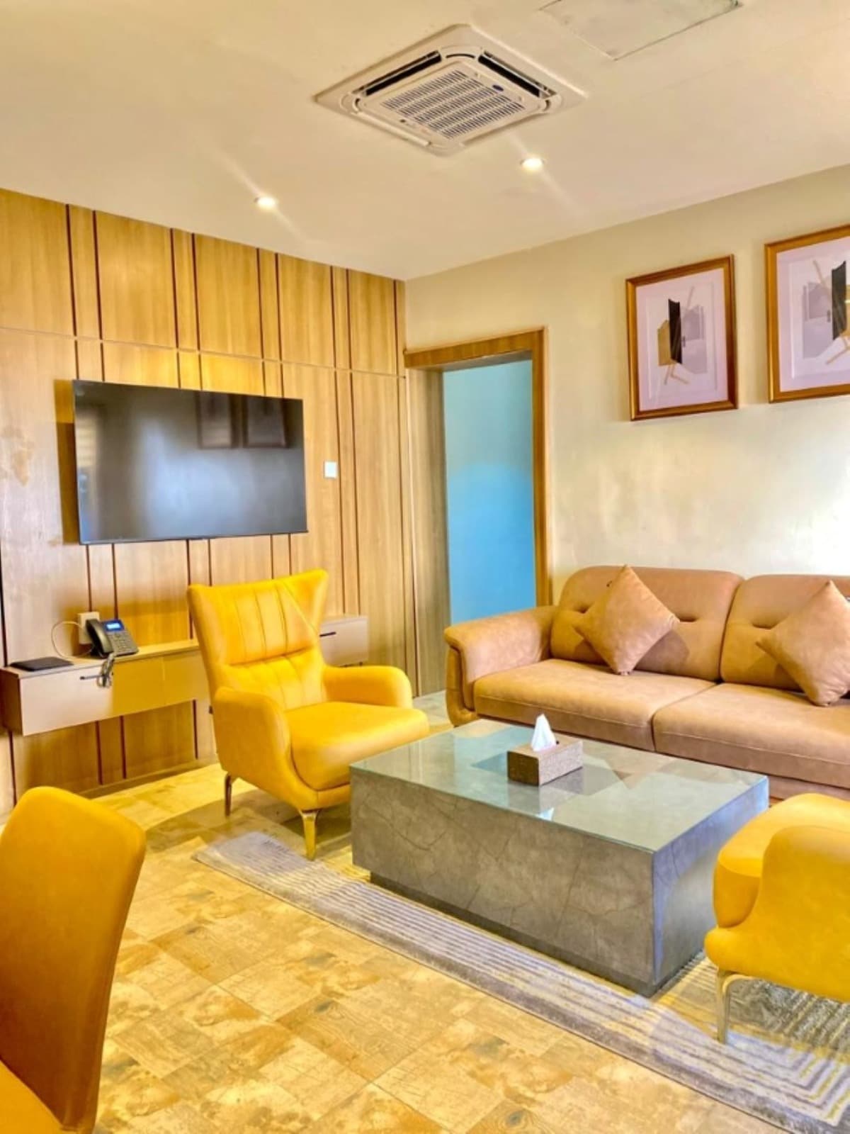 This is a privately owned, redesigned executive 1 bedroom with kitchenette located inside a full-service highly secured hotel in Garki II, with the privacy & comfort of your own apartment-style space, perfect for business travellers, families & extended stays. Enjoy premium amenities such as; Swimming pool Private balcony & exterior Patio Fully equipped gym On-site restaurant High-speed WiFi, Netflix & DSTV 24/7 power supply & AC Daily housekeeping 24/7 security & CCTV Lift access