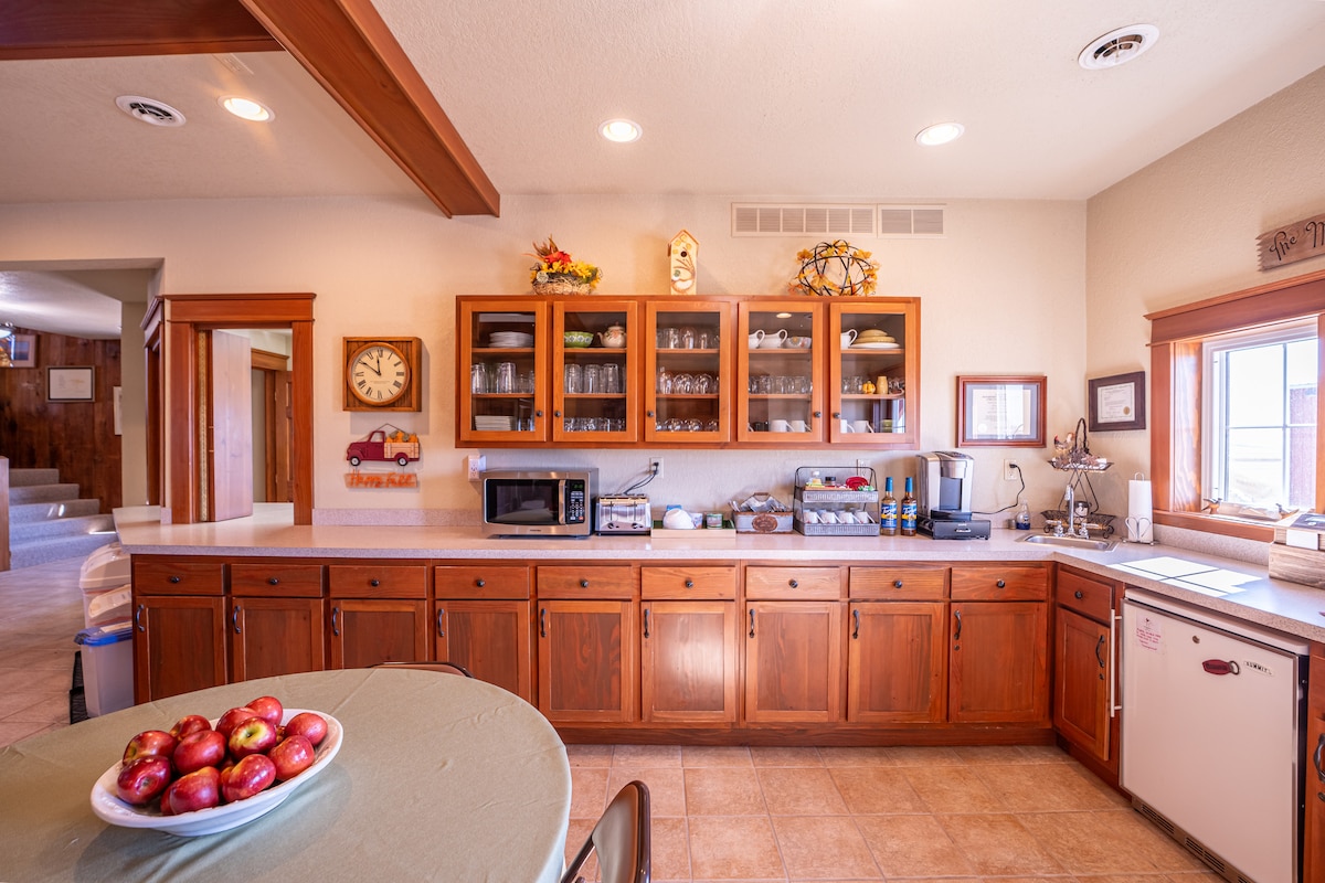 Ce lieu charmant est une maison de style ferme construite en 1914. Facilement trouvée sur la rue principale de la ville, une promenade d'un pâté de maisons dans n'importe quelle direction vous mènera au centre-ville. Une épicerie, des restaurants, des boutiques de cadeaux et un centre communautaire sont idéalement situés dans le centre-ville. Friendly Quarters fonctionne comme une organisation à but non lucratif pour soutenir les missions et les ministères de l'église Earlham Friends (Quaker) située juste à côté.