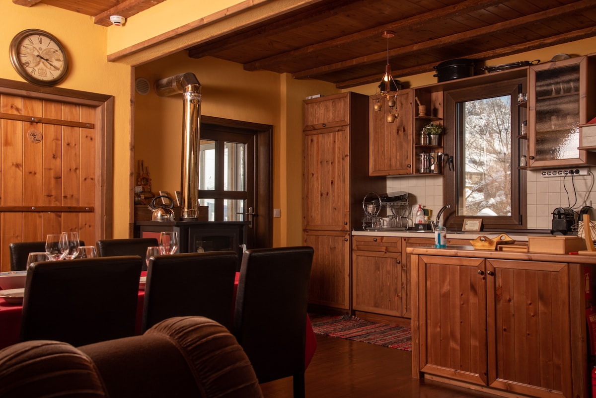 Une belle maison en bois entourée de nature et de verdure avec vue imprenable et à seulement 15 km de la ville de Naoussa à 1260 altitude est idéale pour toutes les saisons. Notre espace est chaleureux et accueillant avec une doublure en bois à l'intérieur et la pierre de l'extérieur avec les grandes fenêtres que vous pouvez voir dans la forêt dispose d'un salon spacieux et d'une cuisine, d'une chambre et d'une salle de bain-WC.Il y a également un balcon qui offre une vue incroyable sur la forêt.
