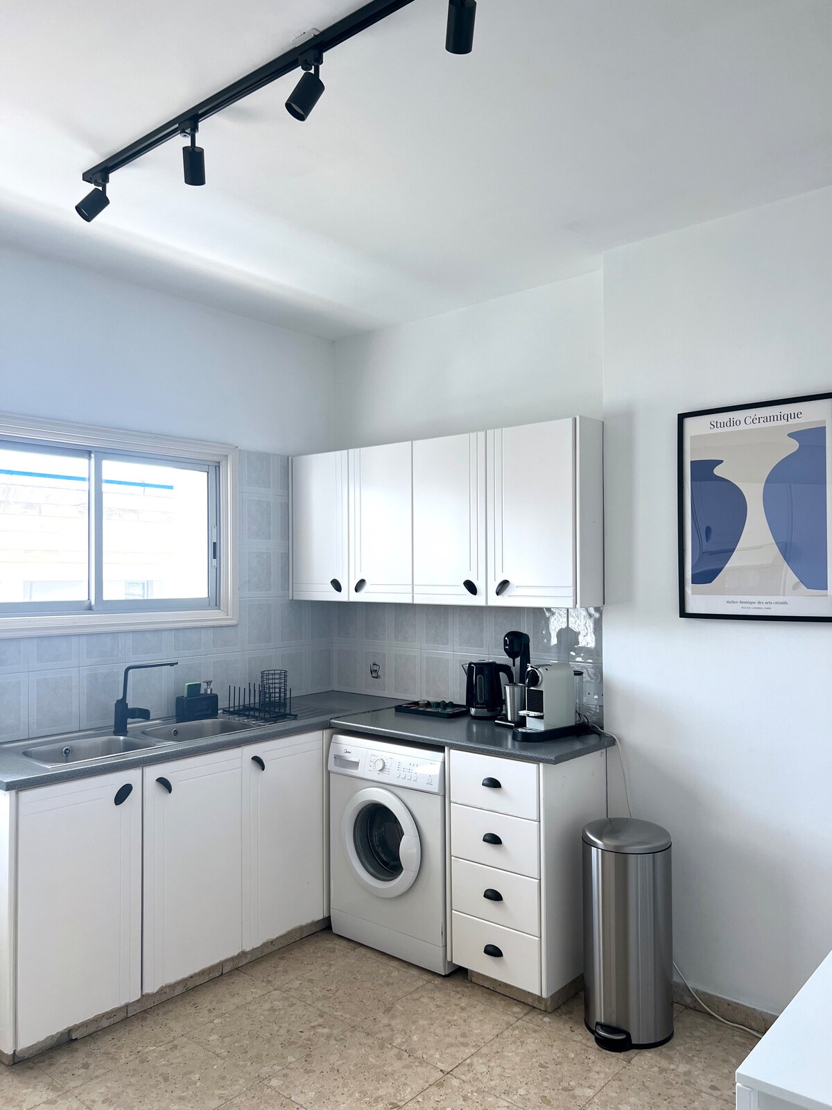 Appartement élégant au cœur de Nicosie Bienvenue dans votre retraite urbaine dans cet appartement lumineux et moderne de 2 chambres et 1 salle de bain dans le centre de Nicosie ! >Vues à couper le souffle de Nicosie depuis un balcon privé >Deux chambres bien aménagées avec un grand espace de rangement >Une salle de bain propre et moderne avec serviettes propres et produits de base > Espace de travail dédié idéal pour le télétravail >Cuisine entièrement équipée avec lave-linge/sèche-linge neuf >Emplacement privilégié au centre-ville, à quelques pas des cafés, des magasins, des sites touristiques et des transports