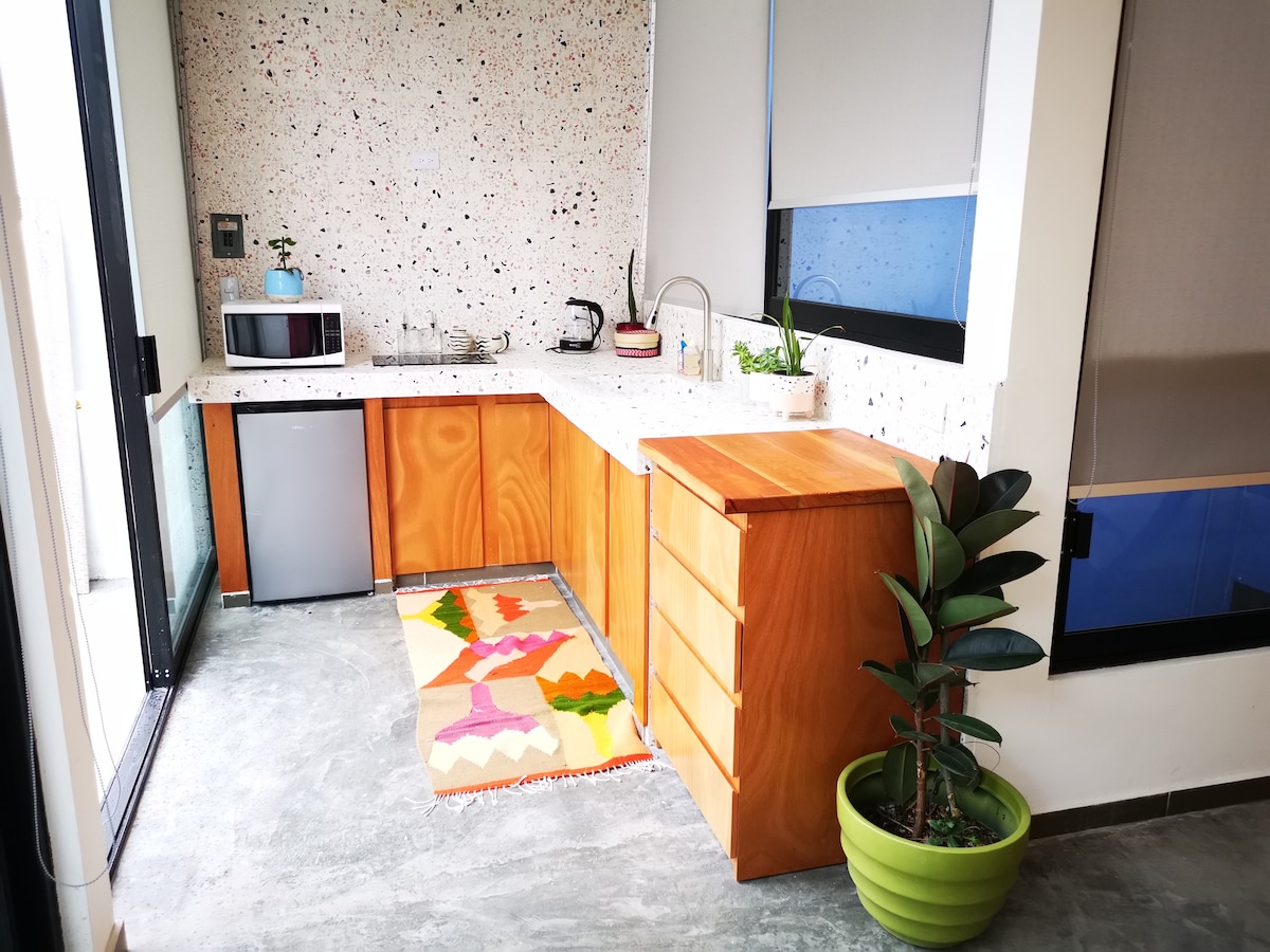 Détendez-vous dans cet incroyable LOFT « A » privé, sûr et élégant à double hauteur avec chambre à l'étage lit Queen Size, accès indépendant, parfaitement ventilé et éclairé par la lumière naturelle. Arrivée autonome avec serrure à clavier numérique. Il offre un service de stationnement fermé gratuit pour 1 voiture avec porte électrique, services complets, meubles neufs, d'excellents équipements, la climatisation, Internet haut débit et un design intérieur que vous allez adorer.