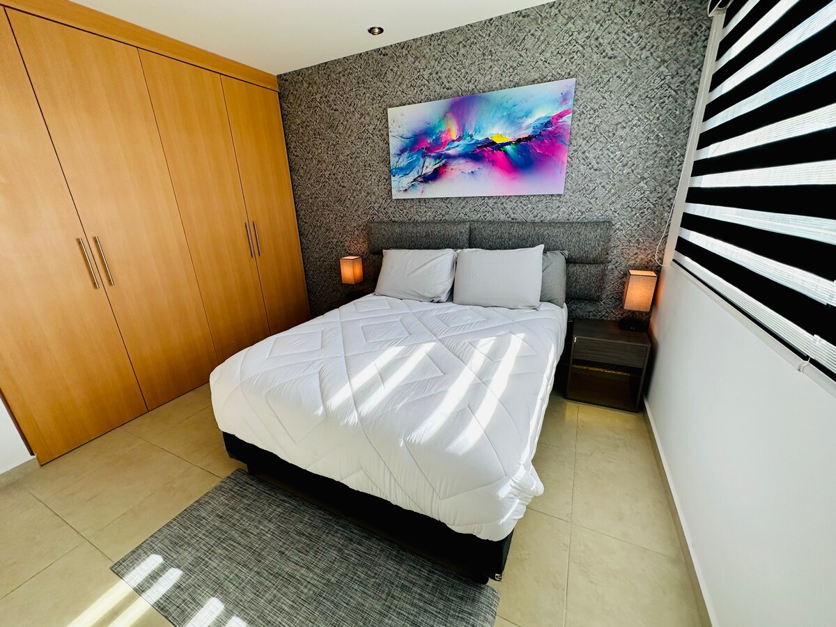 Modern loft with a private terrace and city views, just a few blocks from Jardín de San Marcos. Located in a quiet, newly built building, perfect for exploring Aguascalientes on foot King-size bed Additional sofa bed Private terrace with city views Fully equipped kitchen Washer Smart TV and WiFi Balcony Walking distance to downtown, close to the area where San Marcos Fair takes place We also have several apartments in the same building, ideal for groups who want to stay close to each other