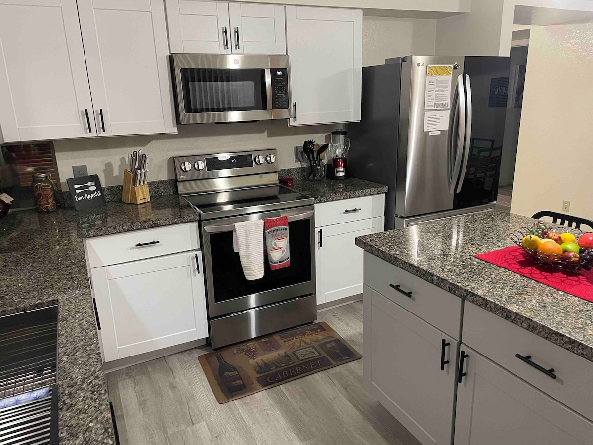 Bienvenue sur Luxe Stays ! Notre retraite spacieuse dans la ville ensoleillée d'Ahwatukee, en Arizona, peut accueillir 7 personnes avec un lit King Size dans la chambre principale, un Queen Size dans la deuxième chambre et un lit complet + un lit jumeau dans la troisième. Profitez d'une cuisine entièrement équipée, d'une télévision connectée, d'une connexion Wi-Fi et d'un patio privé. À quelques pas d'un lac pittoresque, de sentiers de randonnée, d'un golf et de magasins, avec un accès facile à l'I-10 et à la Loop 202. Que vous recherchiez la détente ou l'aventure, nous sommes là pour rendre votre séjour luxueux, sans stress et inoubliable !