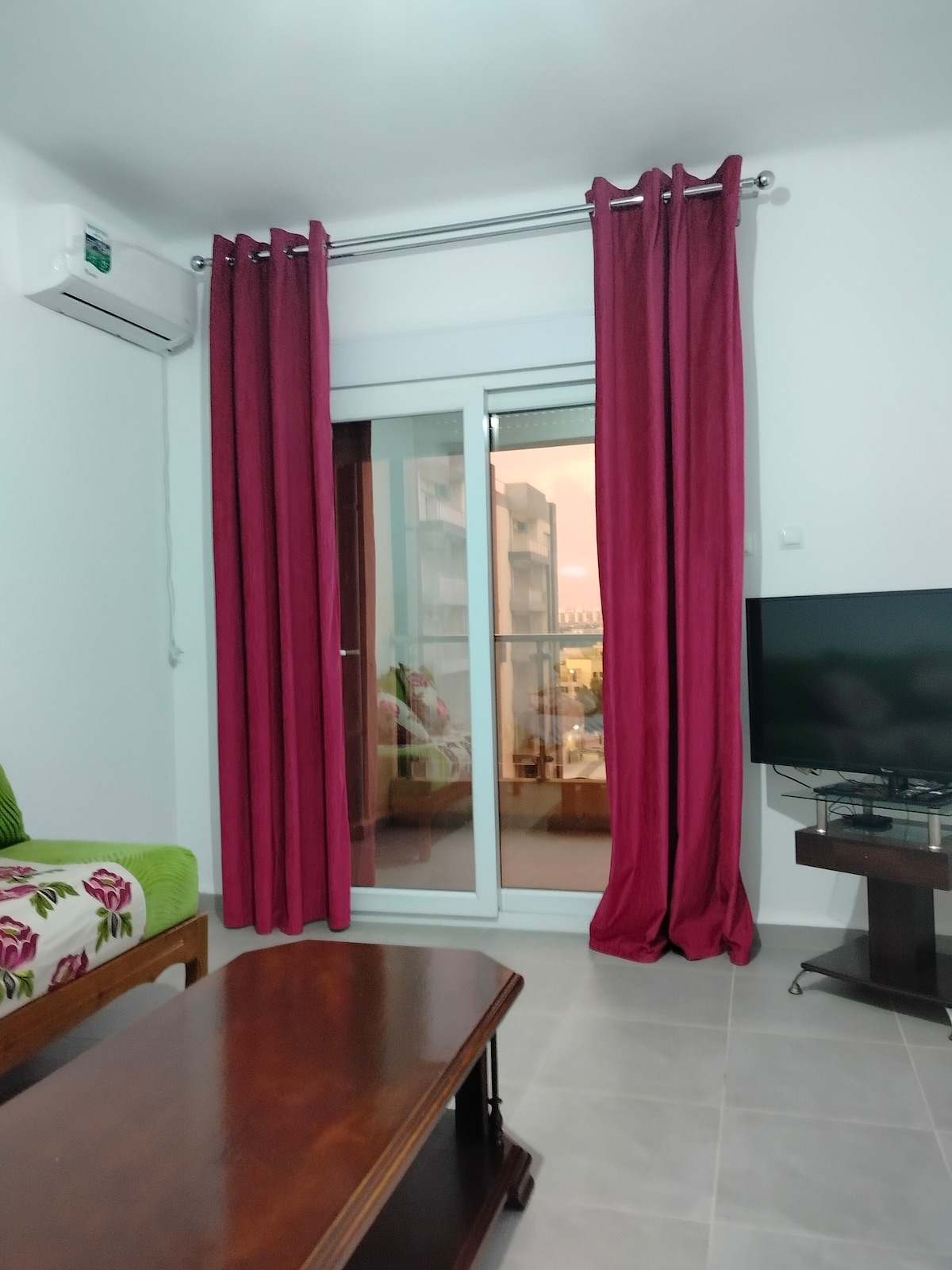 Profitez d'un logement élégant et central sur l'avenue à proximité de le cité les palmiers appartement neuf et lumineux d'une superficie de 59 m2 climatiser , situé au 10 eme étage d'une résidence moderne une place de parking (2 ascenseurs ) véhicule de location disponible si vous le souhaitez