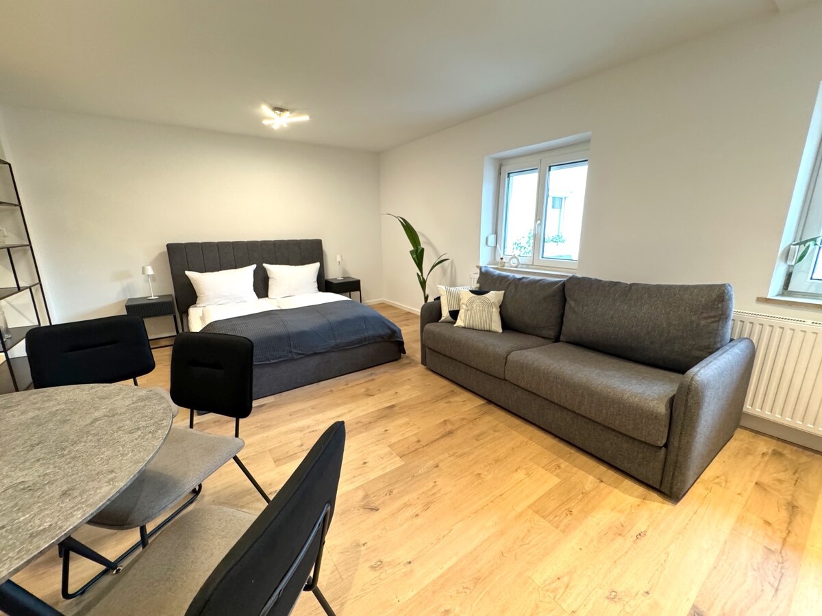 Ce logement élégant est parfait pour les couples qui aiment les vacances en ville. Situé au calme dans la vieille ville, cafés, boulangeries, restaurants, services à proximité. Belles possibilités d'excursions, randonnées à quelques kilomètres /Bord des Alpes/ Dans la maison se trouvent 3 appartements. Au 2ème étage se trouve l'appartement, cuisine moderne, chambre à coucher, coin repas dans un, à côté se trouve la salle de bain avec machine à laver. Le wifi est bien sûr disponible. Bienvenue. :)