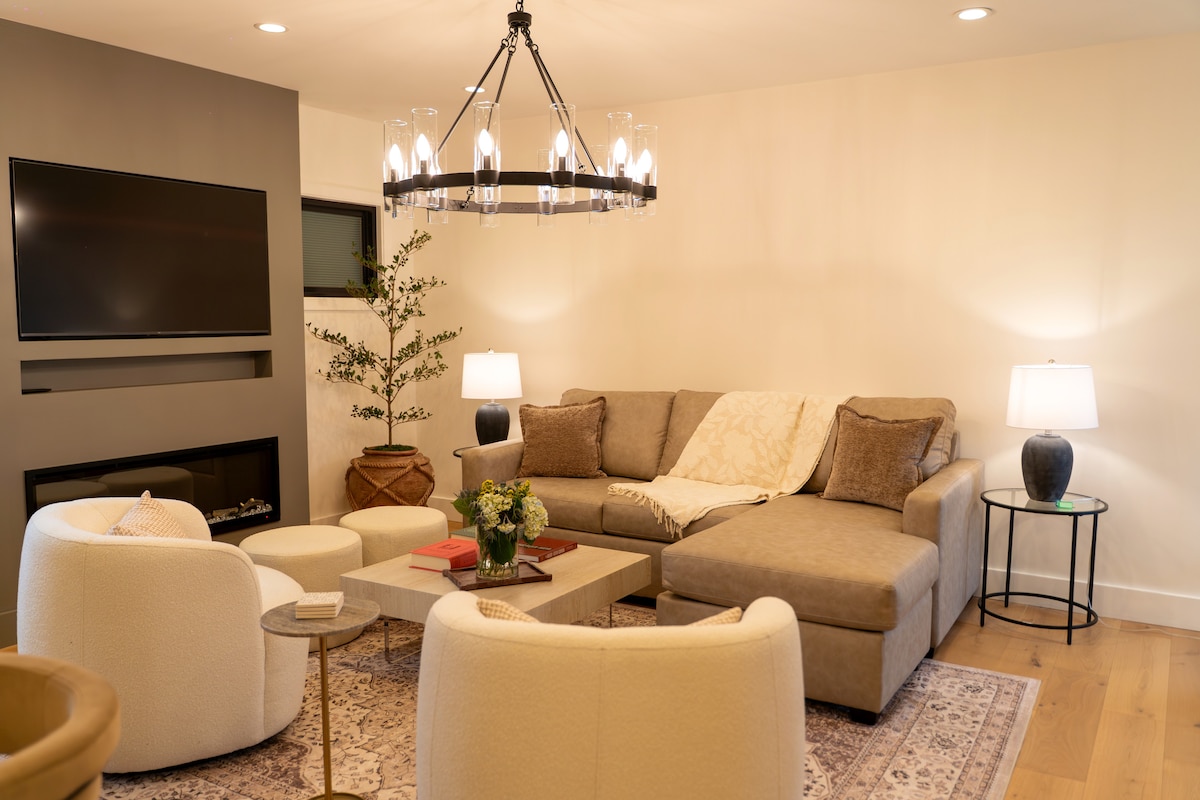 Nous sommes heureux de vous accueillir dans notre suite studio calme et spacieuse ! Notre suite est située au rez-de-chaussée de notre maison moderne de milieu du siècle sur deux niveaux avec une entrée latérale privée. La chambre est spacieuse et comprend un lit Queen Size confortable avec plateau-coussin. La salle de bain de luxe dispose d'une grande douche vitrée avec pomme de douche à effet pluie, de deux vasques et d'un dressing. À l'intérieur du dressing, nous avons également aménagé une station de café et de thé avec un mini-réfrigérateur et un distributeur d'eau froide/chaude.