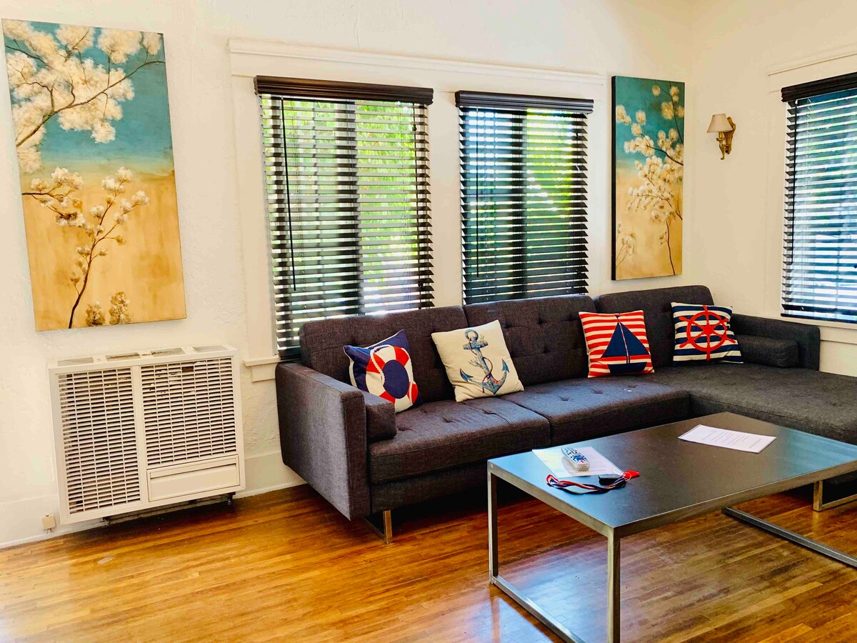 Ce studio récemment rénové a été conçu avec de l'espace, une attention à l'éclairage et un décor attrayant. En entrant dans cet espace, vous ressentez immédiatement la capacité de prendre une profonde inspiration. Il a l'essence de vivre un nouvel endroit, tout en ayant tout le confort d'un chez-soi. Le quartier est situé dans une partie très désirable de Long Beach. C'est un endroit très paisible à être tout en étant également à distance de marche de la vivacité de 2nd Street (restaurants & boutiques) et de la plage !