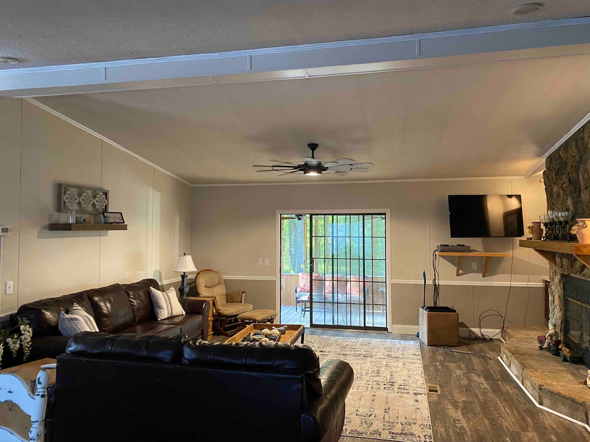 Détendez-vous en famille dans ce logement paisible. Situé sur les rives de la rivière Oconee. Rampe de bateau publique à 1,5 kilomètre. Bord de la rivière. Bel endroit privé pour les affaires ou le plaisir. Deux chambres avec deux salles de bains. Porches avant et arrière. Clôture dans la cour pour les jeunes enfants, les animaux de compagnie et l'intimité supplémentaire. Lott se connecte à la rivière. Plus de 100 pieds de front de rivière Le Wi-Fi a été ajouté à partir de 1-25-25 à la demande populaire.