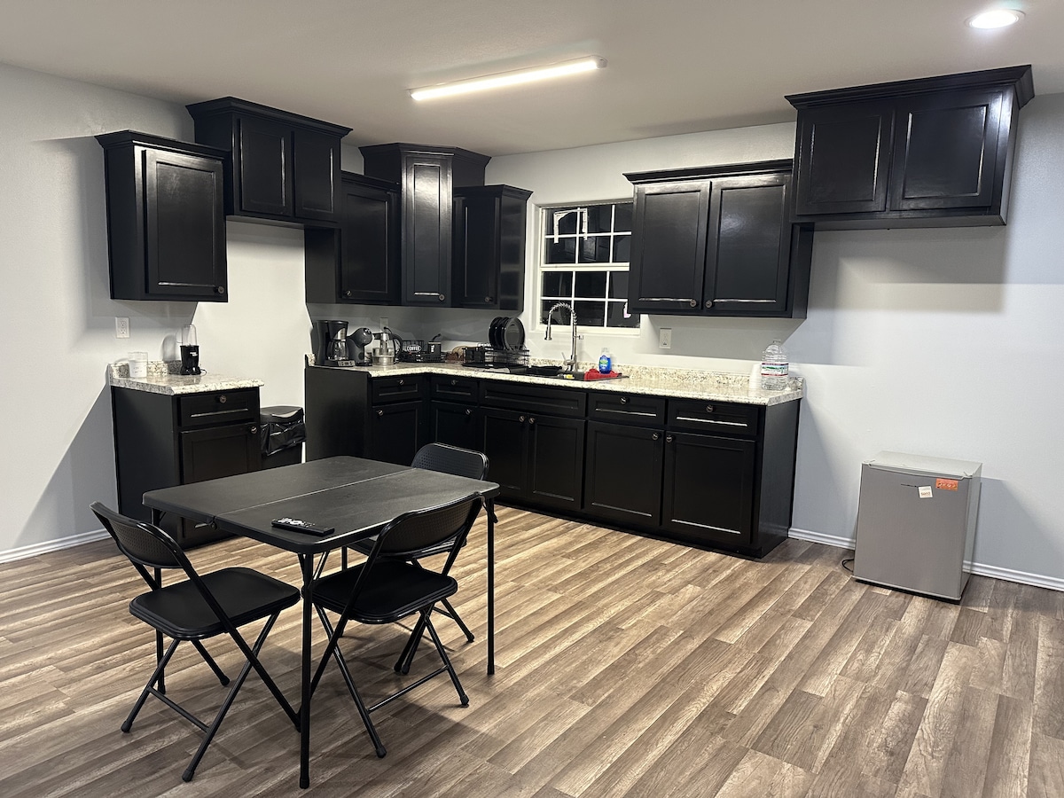 Découvrez la commodité du Wi-Fi haut débit dans ce charmant studio qui vous donne l'impression d'être chez vous loin de chez vous. Voici ce que nous avons en réserve pour vous : - Une salle de bain bien aménagée avec une douche complète. - Un coin chambre confortable avec un lit Queen Size. - Une cuisine entièrement équipée et une table à manger accueillante. - Un espace salon confortable. - Accès complet à une télévision pour votre divertissement. Votre propre patio privé, avec barbecue et mobilier d'extérieur, pour votre plaisir exclusif.