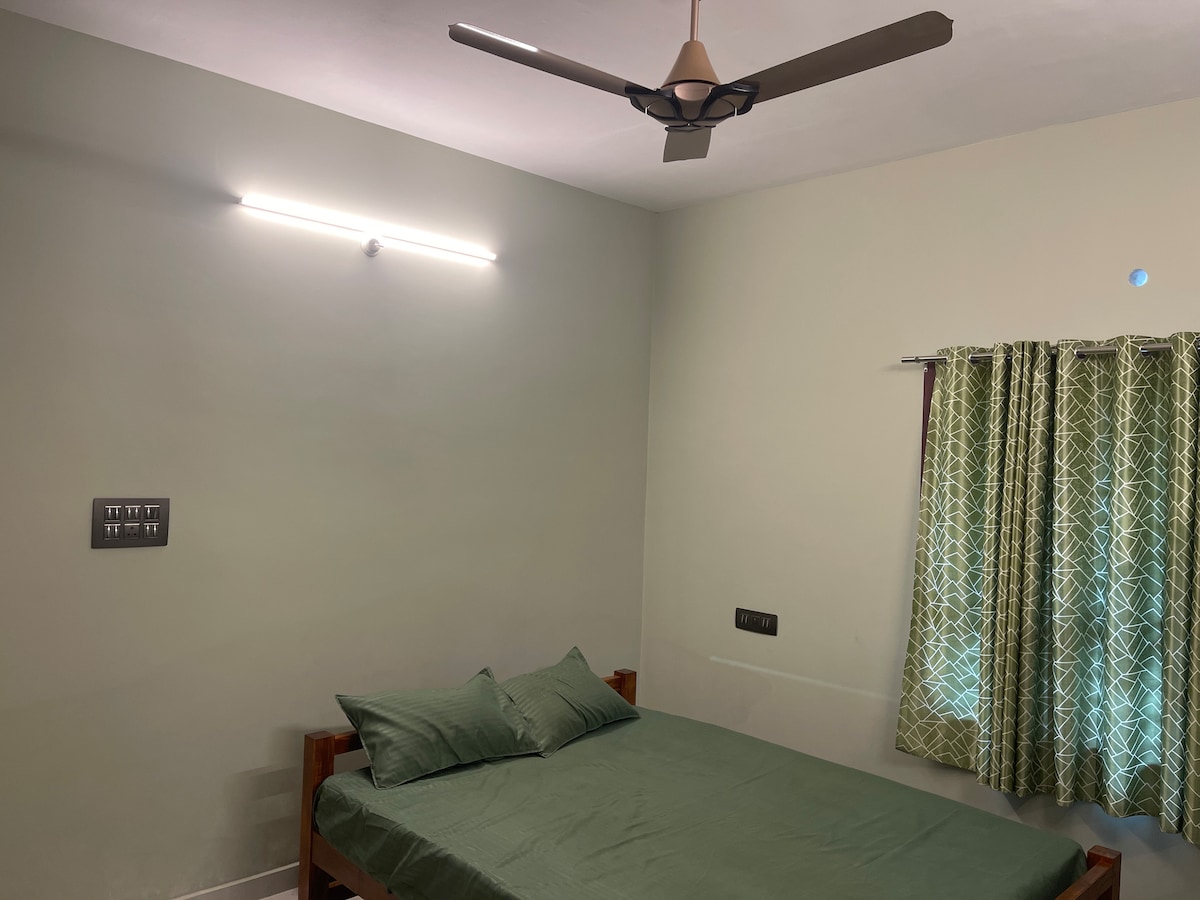 Découvrez le charme d'une maison spacieuse et traditionnelle du Kerala entourée de nature. Profitez de nuits paisibles avec le chant des oiseaux, détendez-vous dans un espace esthétique et rafraîchissez-vous dans un bain ouvert. En outre, explorez une immense cour arrière pleine d'arbres et détendez-vous à l'extérieur dans notre zone de détente avec des livres et des jeux de société pour un plaisir infini. Parfait pour une retraite patrimoniale, cette maison intemporelle mêle histoire, confort et nature dans un cadre paisible. Également disponible pour les séjours longue durée avec un espace de travail dédié :)
