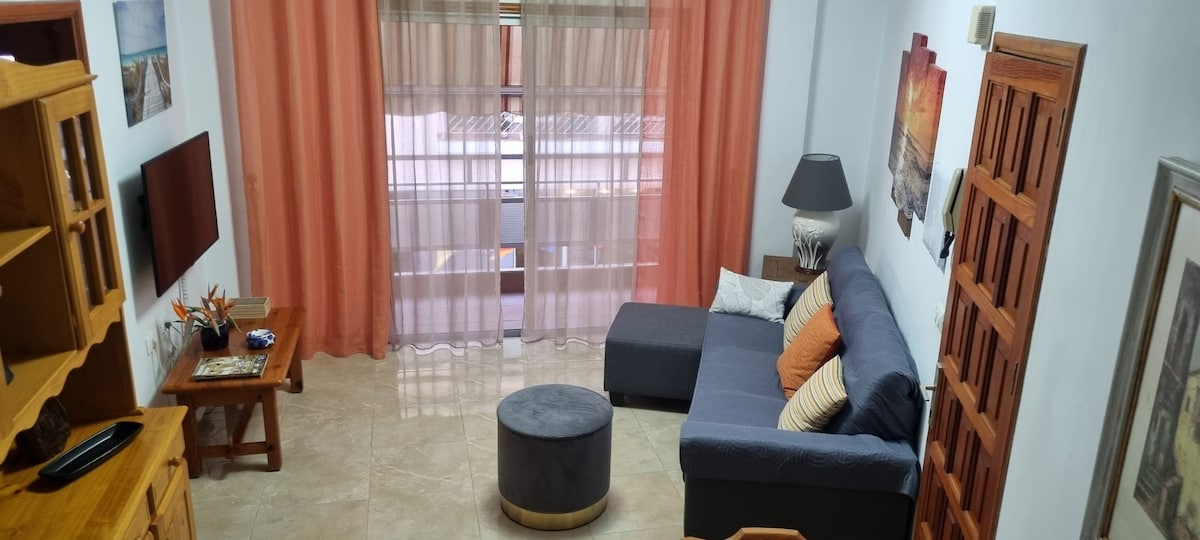 Lumineux appartement d'une chambre à 500 mètres de la mer. Capacité de 4 personnes avec canapé-lit super confortable . Il est entièrement équipé. Très pratique et idéale pour une famille ou un groupe d'amis. Il dispose d'un très grand salon-salle à manger avec balcon . Cuisine américaine entièrement équipée, une salle de bain disponible. Situé dans le centre d'Alcalá, le village avec le meilleur climat de Tenerife. Supermarché et parking gratuit dans la rue à seulement quelques mètres à pied.