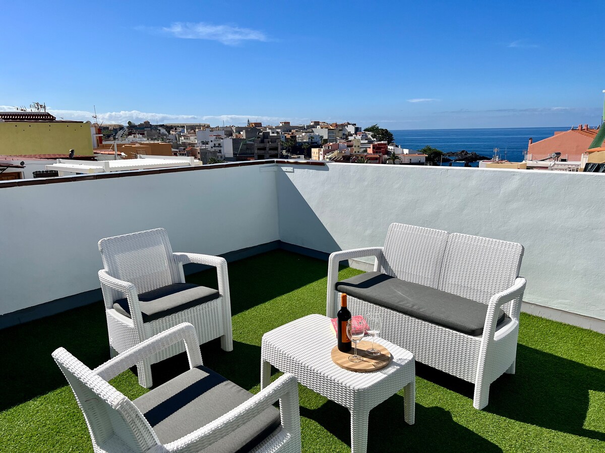 Bienvenue dans l'appartement élégant et inspirant avec vue imprenable sur l'océan. La vie à Alcala est plus lente. Commencez votre matinée avec une tasse de café sur une terrasse en admirant une vue imprenable et en vous livrant aux sons de l'océan. Passez des journées ensoleillées à vous détendre et à profiter des vagues à la plage. Et détendez-vous le soir avec un verre de vin local en admirant les couchers de soleil derrière l'île de La Gomera. Réservez cet appartement de deux chambres pour une escapade chaleureuse en famille, un séjour romantique avec votre bien-aimé ou un w