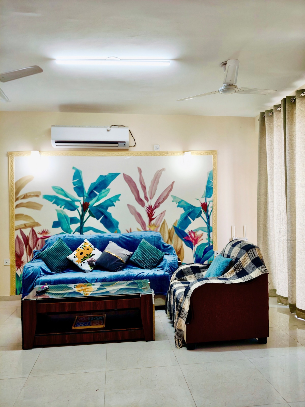 Welcome to Boho Aura, a warm, boho-inspired retreat in the heart of Vrindavan, just minutes from Prem Mandir and ISKCON. Step outside the building and you’ll find local markets right downstairs, making daily essentials easy to access. Thoughtfully designed for relaxation, it’s a space for your to unwind after temple visits and feel truly at home. Note - Local IDs are not accepted. Please text us if you have any doubts.