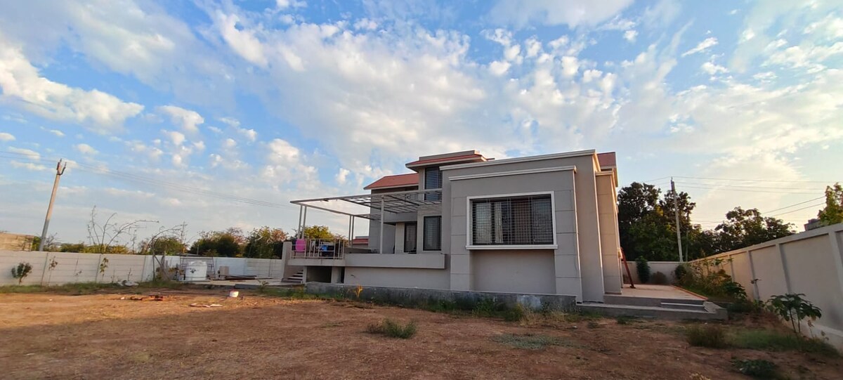 Bienvenue dans notre charmant bungalow à Anand, Gujarat ! Avec 3 chambres, 2 salles de bains et de nombreux espaces extérieurs dont des terrasses et des jardins, c'est la retraite parfaite. Niché dans le quartier recherché de Vallabh Vidyanagar, connu pour sa verdure luxuriante et sa proximité des bazars commerciaux et des marchés. Besoin d'aide ? Notre femme de ménage sur place propose des services de cuisine et de nettoyage moyennant des frais supplémentaires. Des dispositions pour une voiture et un chauffeur peuvent être prises après la réservation. Votre maison idéale loin de chez vous vous attend !