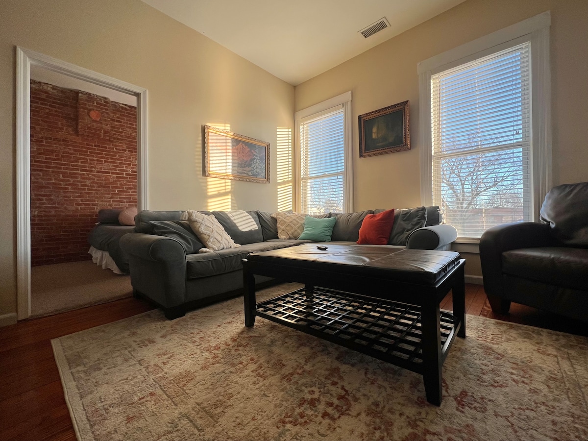 Ce logement parfaitement situé offre un accès facile à tout ce qu'Iola a à offrir. Situé dans le bâtiment historique de la King Bridge Company, sur le côté sud-est de la plus grande place de ville d'Amérique qui abrite désormais Audacious Boutique, Alpha Dog et 4Ms et une librairie Silent Q, cet appartement nouvellement créé est idéal pour explorer la région. Garez votre voiture, puis utilisez le réseau local de pistes cyclables pour explorer le tout nouveau Lehigh Portland State Park.
