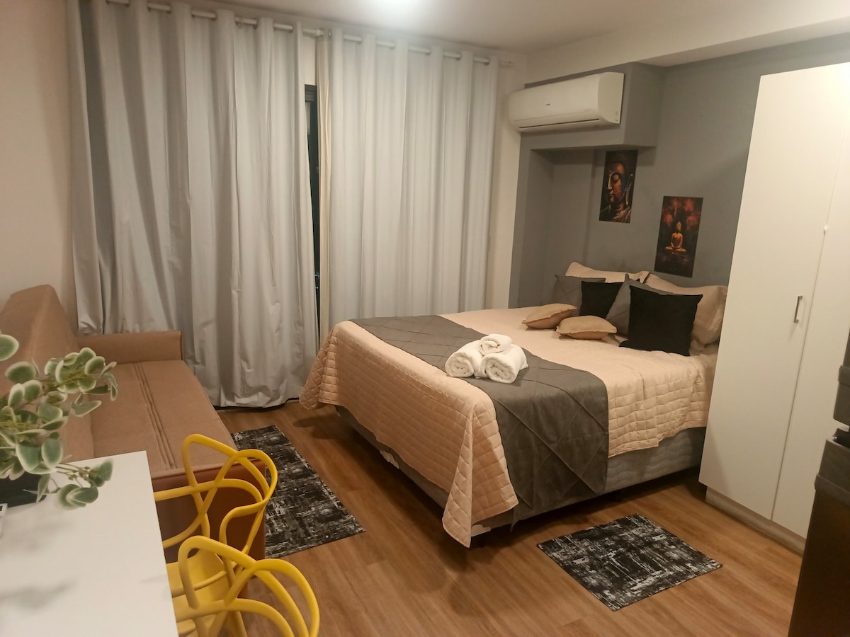 Studio 40011 : à 4 min d'Allianz Park. Studio compact, moderne, complet et confortable dans l'une des régions les plus culturelles de São Paulo. 📍 Entouré de cafés, de restaurants et de spectacles. Ici, la ville vibre ✨ Lit confortable, comptoir, placard, climatisation, télévision et cuisine équipée avec machine à sandwich, friteuse, cafetière, cuisinière, réfrigérateur. 🚿 Salle de bain privée et éclairage confortable. Avec cette ambiance qui donne envie de rester un peu plus longtemps Parfait pour profiter, se reposer ou travailler. Réservez maintenant !