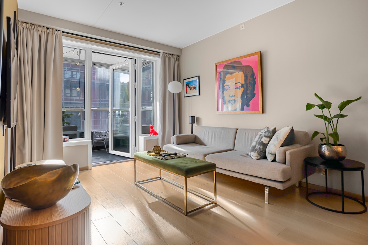 Discover the modern and stylish apartment in the trendy Bjørvika area of Oslo, surrounded by stunning architecture, top-rated restaurants, and easy access to popular attractions. Walk to the Opera, Munch Museum, Deichman Library, Medieval Park, and enjoy a variety of restaurants and shopping options on Karl Johan Street. Sauna visit, urban beach life, and kayaking. On the opposite side of the bay, the art village SALT offers a rich cultural program, along with panoramic views!