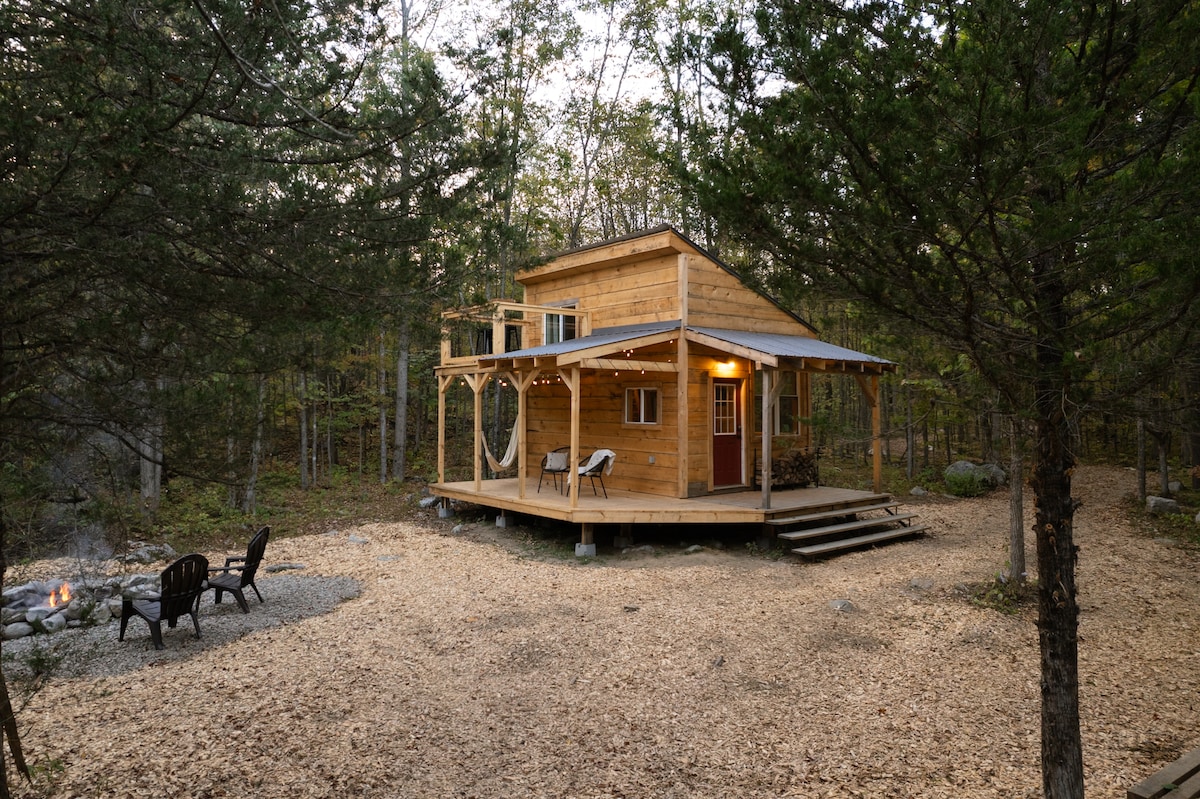 - Cabane confortable de construction amish avec une décoration vintage - DOUCHE EXTÉRIEURE FERMÉE JUSQU'À MI-MAI !!!!! - Lit queen size dans le loft - pas d'eau courante dans la cabine - Une escapade à la campagne parfaite - Grand porche avec vue sur le terrain Équipé d'un réfrigérateur, d'une cuisinière, d'un barbecue à gaz, d'une cheminée, de toilettes à compostage intérieures, d'un foyer (20 $ pour le bois de chauffage). Pas d'eau courante. Panier à vaisselle + lavabo fourni. La douche extérieure est saisonnière, il faut chauffer l'eau vous-même !