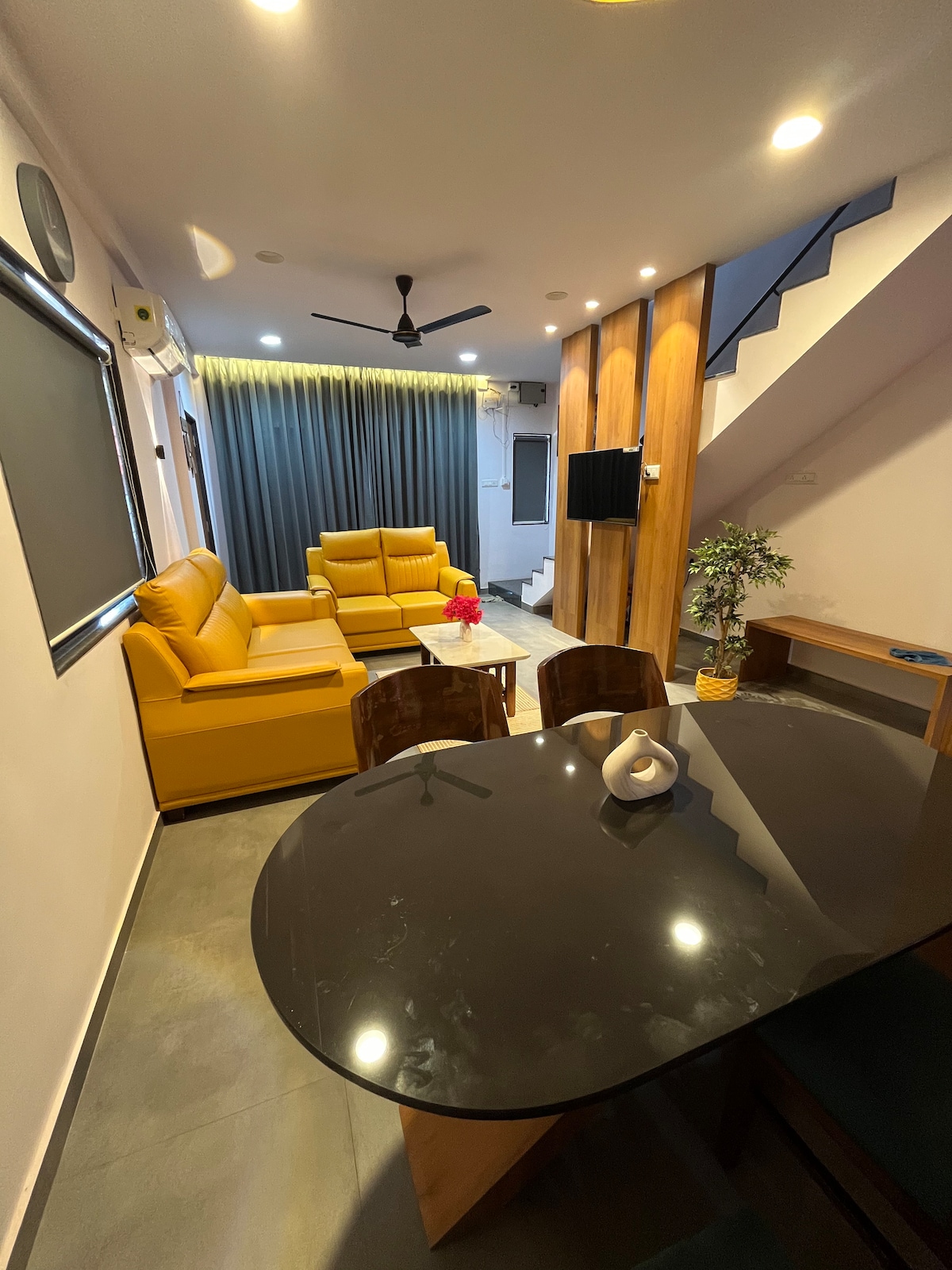 Lele Home est un joyau caché et dynamique à Chiplun pour séjourner, profiter et ressentir la culture de Kokan. L'appartement 1BHK est fraîchement rénové et spacieux. Grande terrasse ouverte avec balançoire est attachée. On peut se détendre et profiter de la nature/du café tout en se balançant. La terrasse peut accueillir toute la famille et les amis pour de longues conversations et célébrations. Le célèbre hôtel Abhishek/Manas est accessible à pied. Visitez des lieux populaires et découvrez la culture Kokan pendant votre séjour. Le gardien fournira une assistance pour les déplacements et la nourriture.