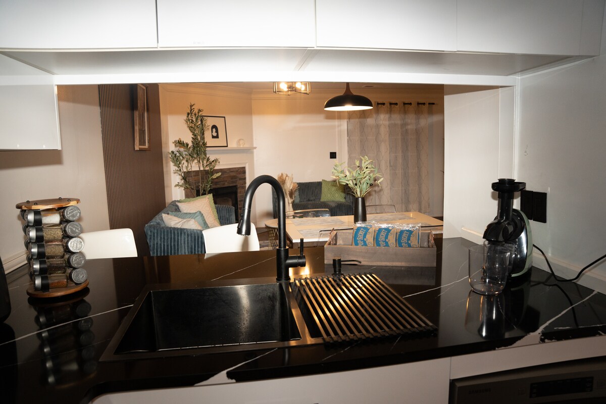 À quelques pas de Canton St. et à distance de marche des lieux de mariage locaux. Ce nouvel appartement de sous-sol avec jardin dispose d'une cuisine entièrement équipée, d'une grande salle de bain avec double vasque, d'une salle de jeux/billard entièrement équipée et d'un bureau privé séparé. Plafonds de 10 pieds dans tout l'appartement et il s'ouvre sur des jardins partagés et un patio privé. Lit King Size. Votre propre allée et entrée privées. Bien qu'ils ne soient pas 100 % insonorisés, l'étage et le rez-de-chaussée ont des horaires de calme entre 22 h et 7 h. Les fêtes sont interdites.