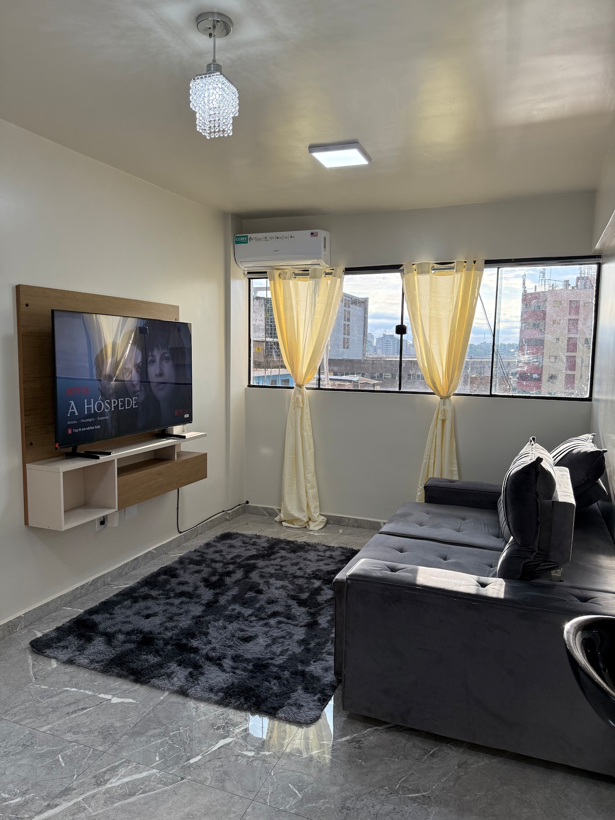 Nous vous offrons la possibilité de séjourner dans un appartement de haut niveau, caractérisé par son confort et ses finitions fines. Il dispose d'un grand espace, toutes ses dépendances avec accès au réseau Wi-Fi étant chauffé. La chambre dispose d'un canapé-lit, d'une télévision de 65" avec accès à diverses plateformes parmi elles ; Disney+, Amazon, HBO, entre autres. Une cuisine complète équipée pour répondre à vos besoins. Espaces communs : piscine, salle de sport, playground inf., quinchos et espaces verts.