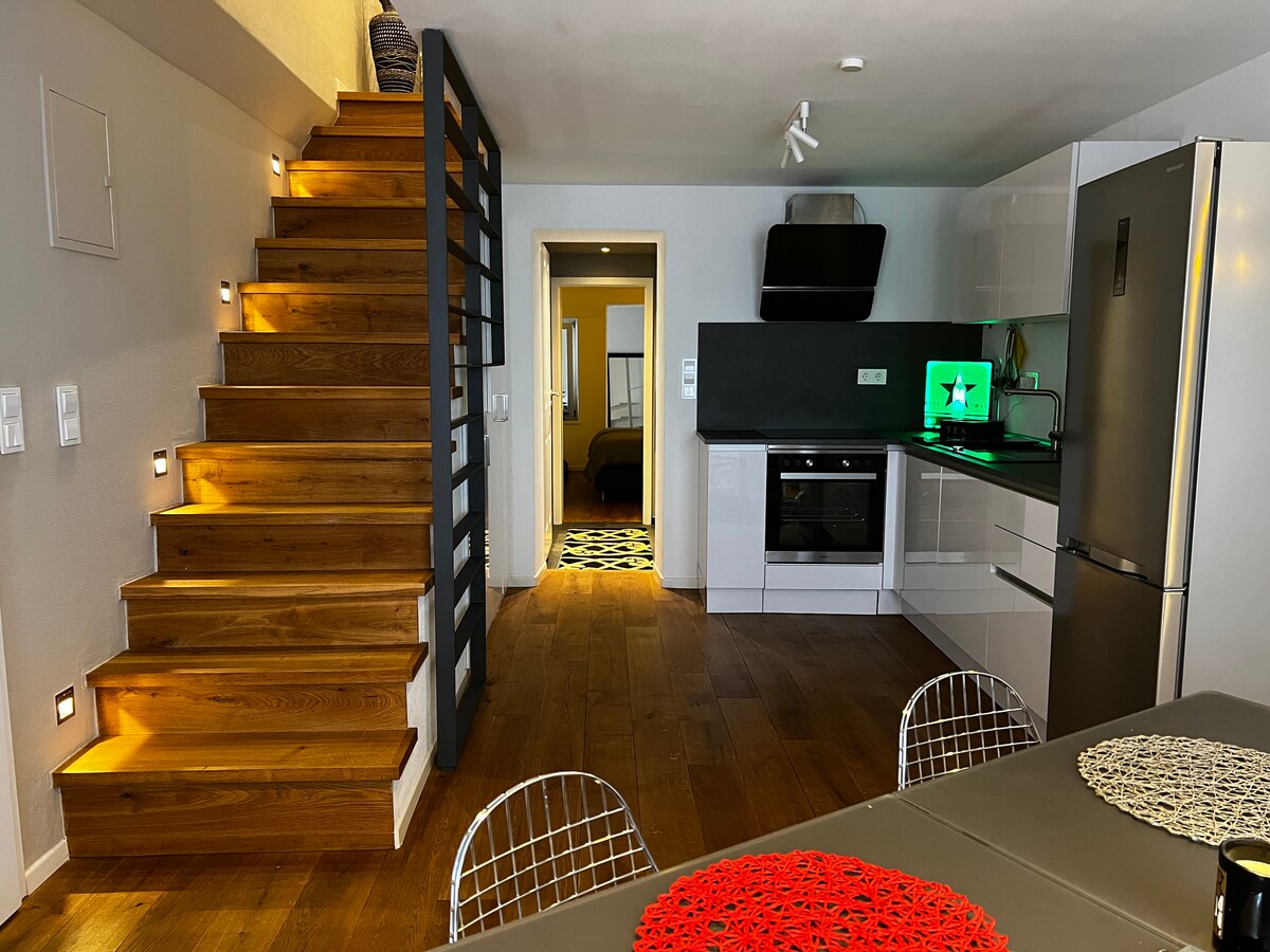 Stylish restored old barn in a stunning secluded location, offering 120 sqm of space with panoramic views of the countryside, a 50 sqm gallery with large windows, an infrared cabin, a walk-in shower, a bathtub, a luxury designer kitchen, terrazzo marble flooring with electric underfloor heating, a historic tiled stove from 1700 and a fenced garden for as many dogs as you like. A dream just 15 min. from Passau, 3 min. from the motorway, and 10 min. from the Danube. Bookable from Nov 2025