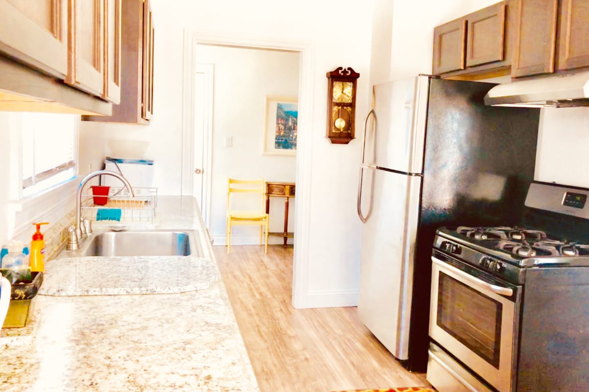 Vacationers, Extended Family, Work Travelers with Fast Internet! ALL the Comforts & Gourmet Kitchen!! Optional 2nd bed set-up fee collected after booking. I'll message options. Fully stocked gourmet kitchen, full-size appliances; small ones too! Full bathroom: large walk-in shower with 2 shower head fixtures! Bidet & every amenity. Patio, water fountain, Adirondack chairs, bistro table, outdoor shower-enjoy privately. Appointed to provide maximum functionality and relaxation!