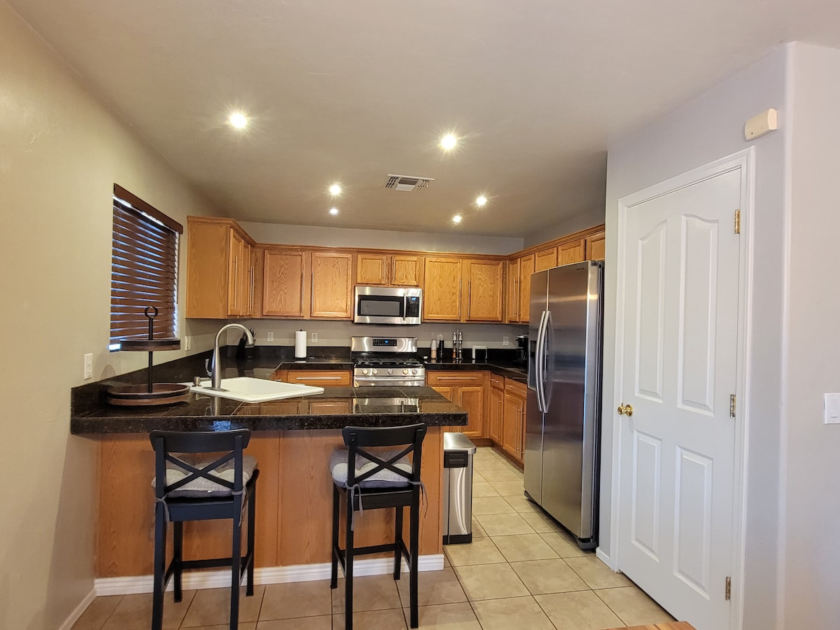 Situé dans la belle ville de Rio Rico. À quelques minutes de la frontière mexicaine et de la communauté artistique de Tubac. À quelques pâtés de maisons d'un magnifique sentier pédestre, d'un gymnase et de plusieurs églises. Cet appartement privé dispose de tous les équipements adaptés aux séjours courte ou longue durée. Nous prenons toutes les mesures nécessaires pour nous assurer que le logement est hygiénique en désinfectant toutes les zones et en lavant toute la literie et les draps pour vous protéger, vous et votre famille ou vos invités.