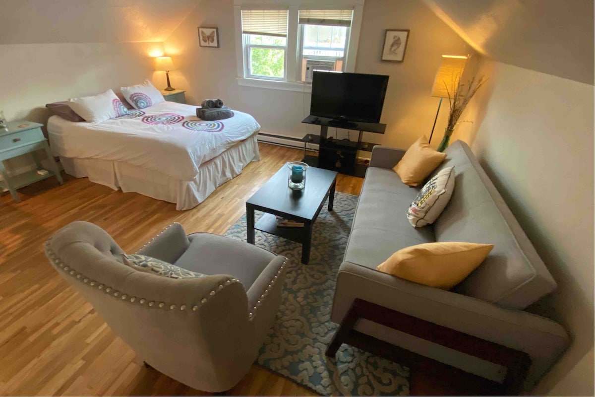 Suite lumineuse et propre de 1 chambre à College Hill avec entrée privée. L'unité dispose d'une kitchenette (avec Keurig, four grille-pain, micro-ondes, réfrigérateur junior et plaque chauffante), d'une salle de bain/douche et d'un accès à la laveuse et à la sécheuse. Il y a un canapé-futon qui peut être transformé en lit double pour 2 personnes de plus (pour info, ce n'est pas aussi confortable qu'un lit ordinaire). WiFi, télévision (avec Roku) et haut-parleur Bluetooth fournis pour le divertissement. À distance de marche des restaurants et bars. L'université est à quelques pâtés de maison.