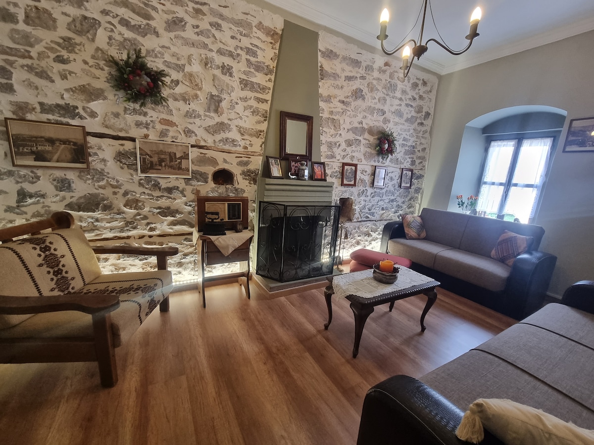 Appartement mansardé rustique, avec une belle vue sur la montagne Parnassos, à une courte distance d'Arachova. Profitez de moments de tranquillité, de chaleur et de détente dans un espace accueillant, avec vue panoramique sur les montagnes de Parnassos et Elikona, idéal pour les couples, groupes d'amis ou familles jusqu'à 4 personnes.