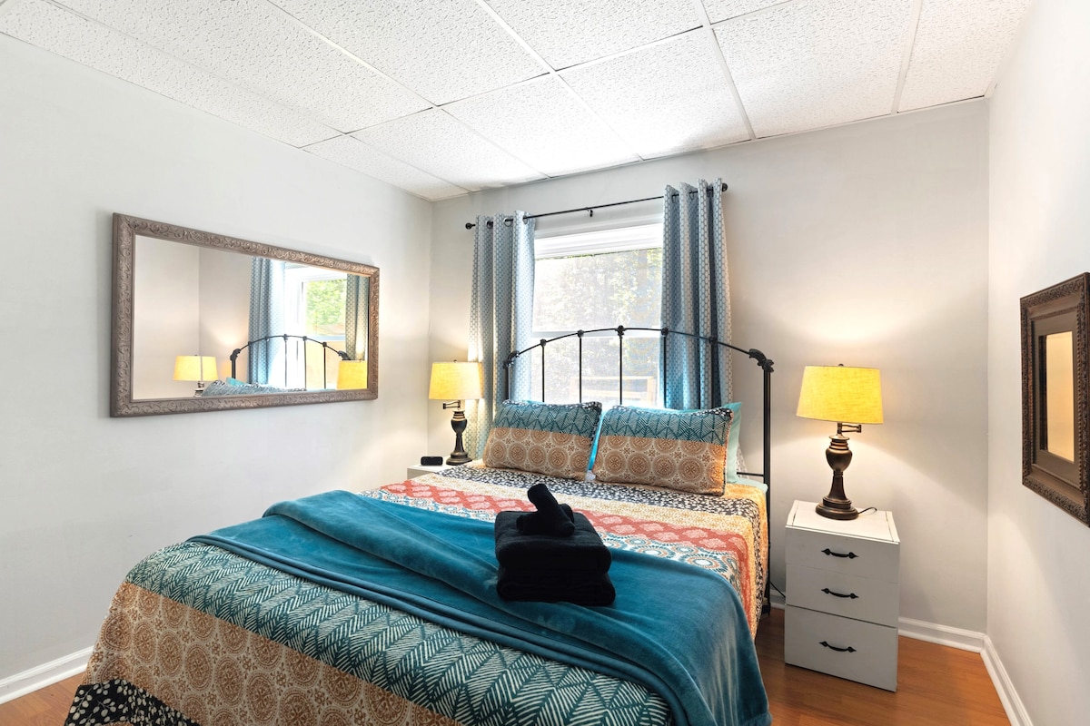 Détendez-vous dans notre appartement privé de 1000 pieds carrés adossé à de beaux bois et un ruisseau. Asseyez-vous dehors et profitez des sons de la nature et du ruisseau. Bien que vous soyez à l'écart de l'agitation de la ville, sachez que vous n'êtes qu'à quelques minutes de l'Université Liberty, du Randolph College et du Lynchburg College, de Centra Health, d'Amtrack, de l'aéroport et du centre-ville de Lynchburg. Notre appartement de deux chambres offre une salle de bain complète, une cuisine partielle, une salle à manger et un salon. Notre hospitalité comprend la communication, la conversation et l'intimité.
