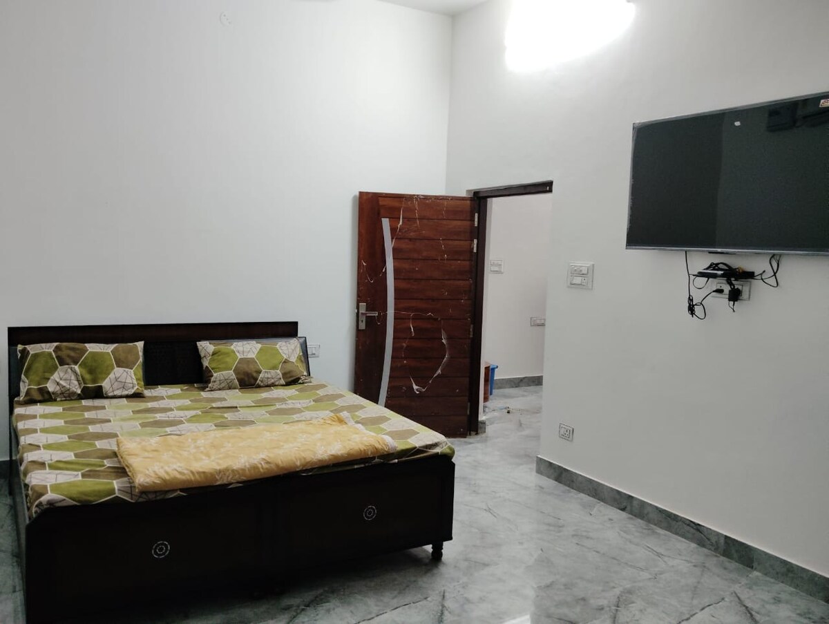 Retraite paisible de 2 chambres dans un endroit isolé, parfaite pour la détente ou l'exploration spirituelle. La maison dispose d'une pelouse à l'avant, d'un parking pour 2-3 voitures, de deux salons, de chambres confortables avec climatisation, de toilettes attenantes et d'un balcon privé. Une cuisine qui assure la commodité. À seulement 3 minutes à pied de Radha Soami Satsang Beas Koharchhan, à 7 km de la gare d'Amb Andaura, à 15 km du temple Chintpurni et à 37 km du temple Jwalaji. Profitez d'un environnement serein à proximité des principales attractions.