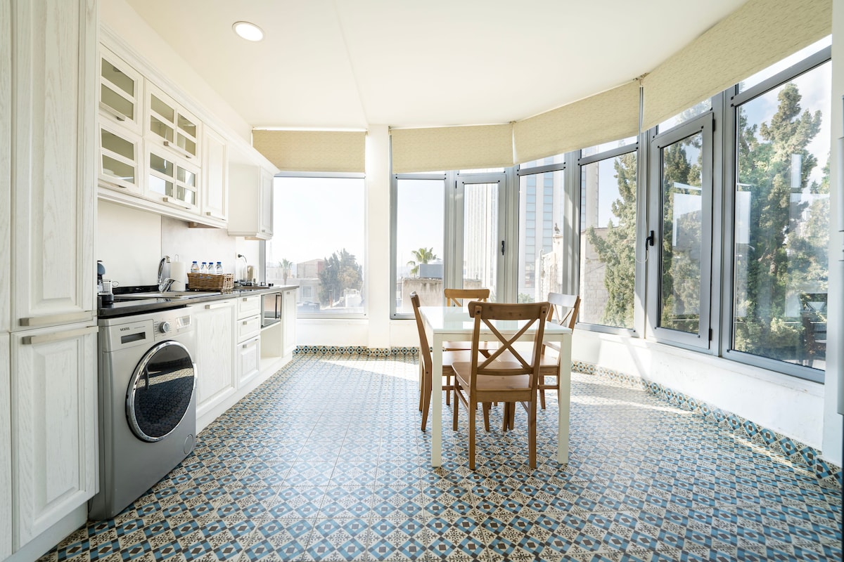 Profitez d'une vue imprenable sur la ville dans notre nouveau studio sur le toit à Dair Ghbar, le quartier le plus chic d'Amman. Espace extérieur incroyable offrant une tranquillité d'esprit absolue, comprend une cuisine entièrement fonctionnelle et un barbecue extérieur. Équipements incroyables : Une énorme télévision connectée de 58 pouces avec Netflix, YouTube et la fonctionnalité Mirroring ; Internet haut débit par fibre optique Canapé-lit confortable pour les visiteurs supplémentaires L'appartement se trouve à 2 minutes de l'ambassade des États-Unis, du centre commercial Taj et d'autres endroits animés comme Sweifieh et Abdoun.
