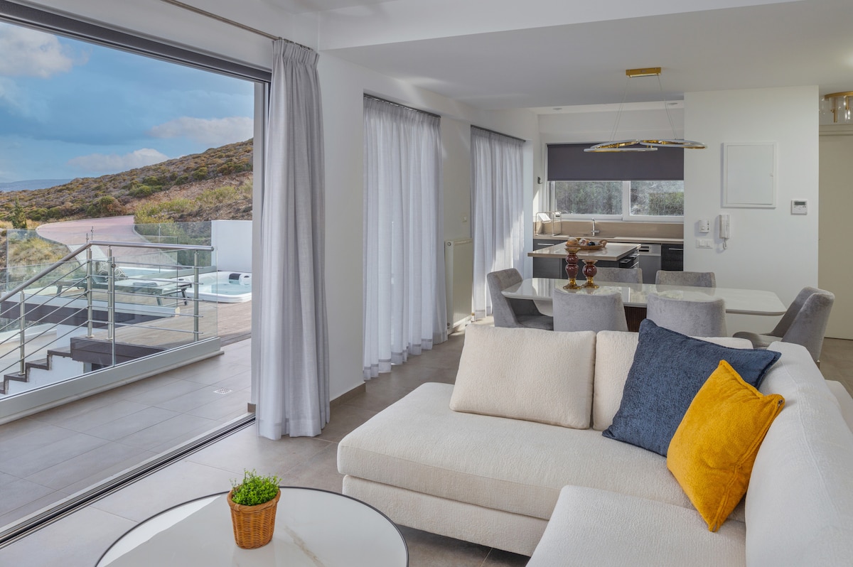 La propriété se transforme en OZEA – Elevated Living ! Des espaces rénovés arrivent, avec de nouvelles photos en mars 2026. Réservez maintenant pour profiter des meilleurs tarifs et vivre cette nouvelle expérience en avant-première ! L’appartement ELIA allie design élégant et confort, avec une chambre et un canapé-lit (jusqu’à 4 pers.). Sa cuisine équipée, ses équipements modernes et son espace extérieur privé avec vue sur la piscine et la mer offrent un séjour détendu et authentique.