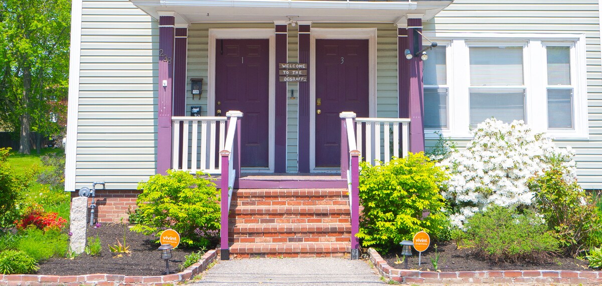 Un bungalow classique des années 1920 dans le Maine rénové avec amour. Notre maison remplie de plantes acceptant les animaux de compagnie est l'une des préférées d'Auburn. Détendez-vous dans notre studio de yoga ensoleillé, idéal pour la méditation, la peinture ou le mouvement. Chauffage CVC et chauffe-eau hybride pour un confort écologique. Profitez du jardin de pollinisateurs reconstitué des fleurs indigènes du Maine. À 5 min de Bates & St. Mary 's, 40 min de Portland, Brunswick, Bath et Freeport. Les séjours de 14nuits et plus comprennent un ménage hebdomadaire gratuit.