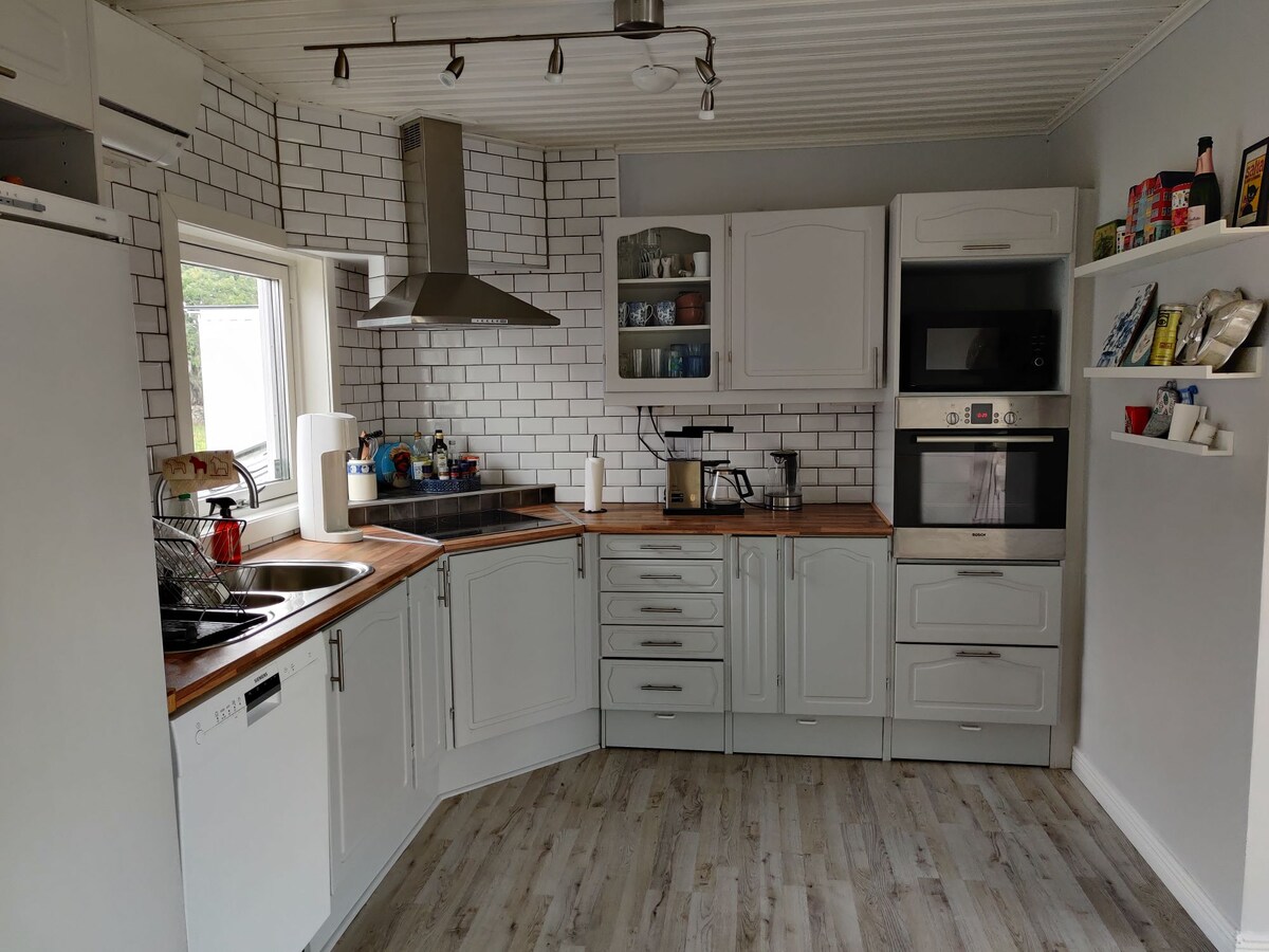 Restez confortable et paisible dans une vieille longueur à colombages du XIXe siècle. L'emplacement est rural avec des animaux et la nature juste devant la porte, mais en même temps proche de la ville, des restaurants, du plaisir, des magasins et de la plage/baignade. Ici, vous vivez calme et spacieux d'environ 120 m ² avec 2 chambres, cuisine, grand salon avec canapé, TV et salle à manger ainsi qu'une salle de bain avec WC, douche, lave-linge et sèche-linge. À côté de la maison, il y a un patio luxuriant et isolé avec un barbecue juste à côté des pâturages avec des moutons et des chevaux. La voiture que vous pouvez garer juste à l'extérieur.