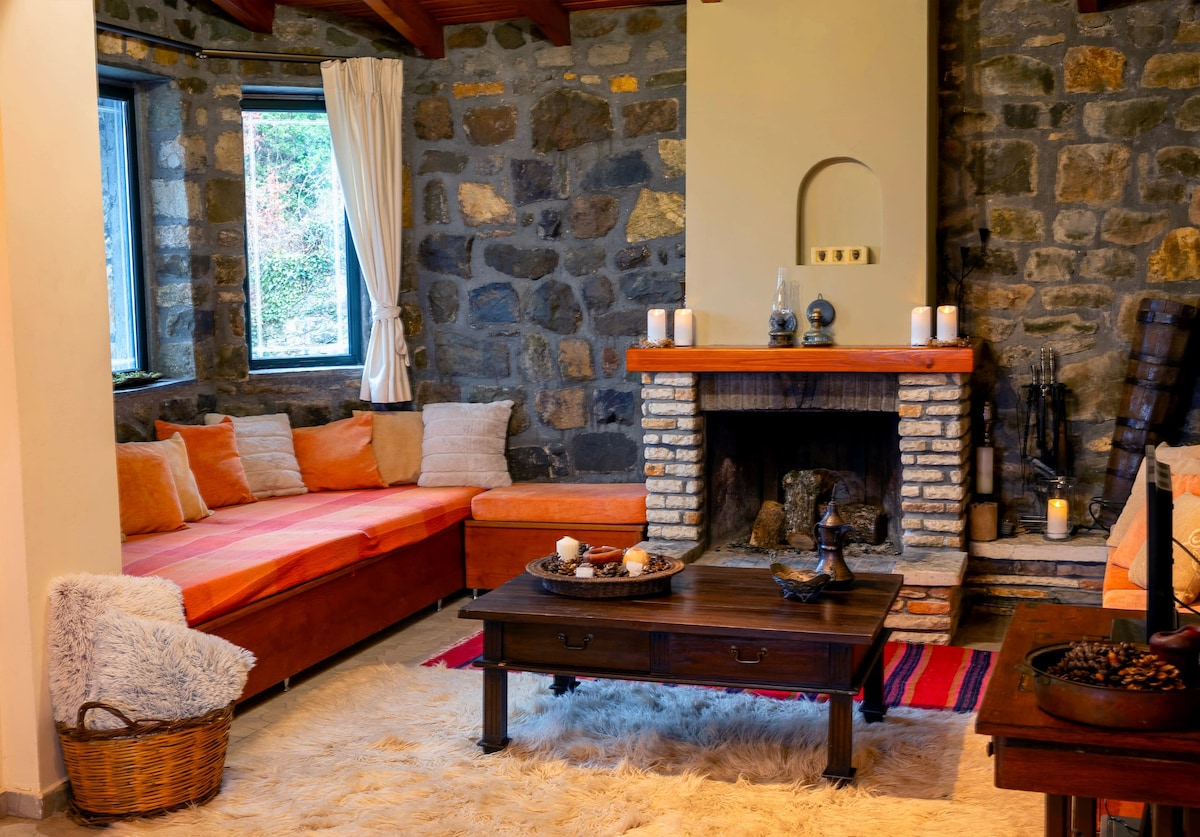 Chalet en pierre avec vue imprenable sur le lac Trihonida