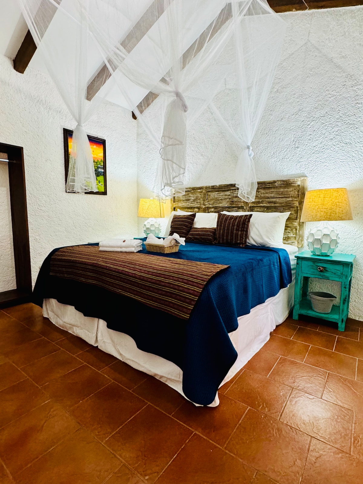 Profitez d'un séjour calme et confortable dans notre maison de type hôtel de charme située dans le village de San Cristóbal el Bajo, à quelques minutes du centre historique d'Antigua Guatemala. Nous proposons une chambre privée avec salle de bain complète dans la chambre, idéale pour les couples, les petites familles, les voyageurs solitaires ou ceux qui recherchent un espace intime et détendu.
