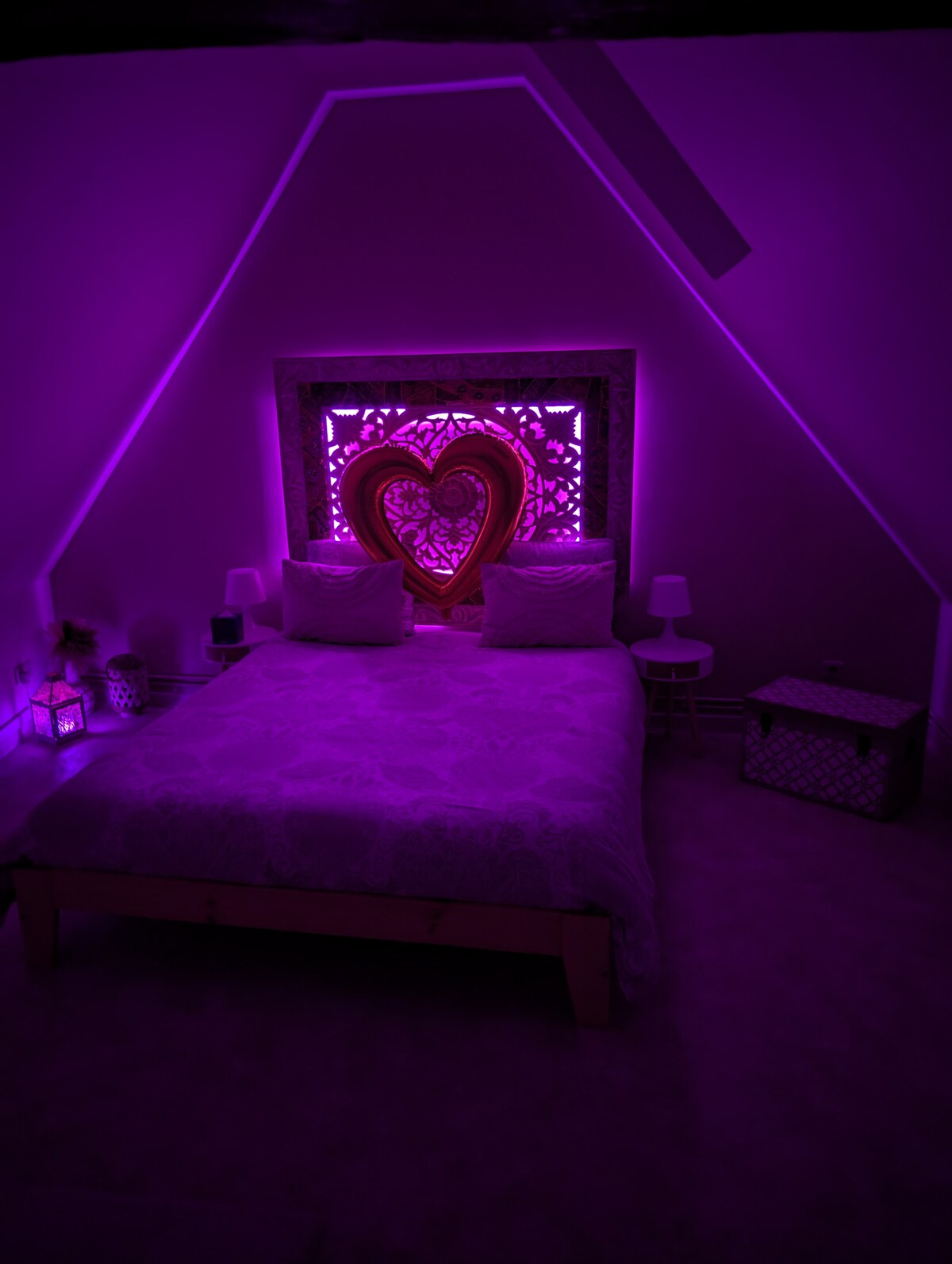 le "Spacidulé", maison avec jacuzzi intérieur à accès illimité , dans une ambiance pop art. Au rez de chaussée, vous trouverez un espace détente avec jacuzzi, un sejour avec télé connecté, une grande cuisine équipée, une salle de bain design. À l'étage une chambre avec télé connectée, lit queen size À l'extérieur, une cour avec salon de jardin. Vous pourrez, dans tous les espaces qu'offre cette maison, choisir votre ambiance lumineuse selon vos envies.