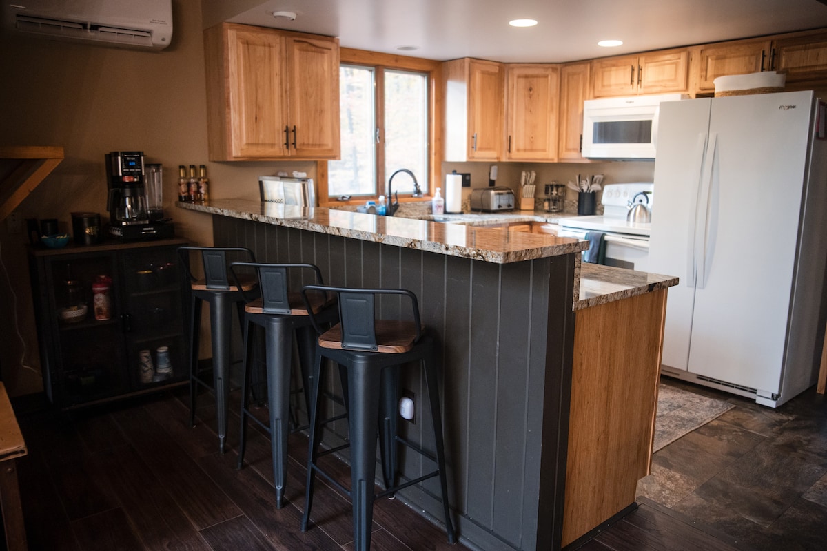 Nous avons une belle Aframe construite de 1 000 pieds carrés ! Récemment installé un système de théâtre de 100 pouces dans le salon ! La cabane se trouve dans les lacs du Nord, ce qui offre une escapade parfaite pour le plein air. Sentiers côte à côte ! Nous offrons 2 kayaks à utiliser (à transporter), des planches et des sacs de cornhole, des sentiers pour votre UTV/ORV, de la randonnée, du rafting à Jordan Valley Outfitter, de la motoneige et de nombreux restaurants gastronomiques, plusieurs stations de ski et des excursions d'une journée ! De plus, un jacuzzi à 90 jets pour une détente ultime !