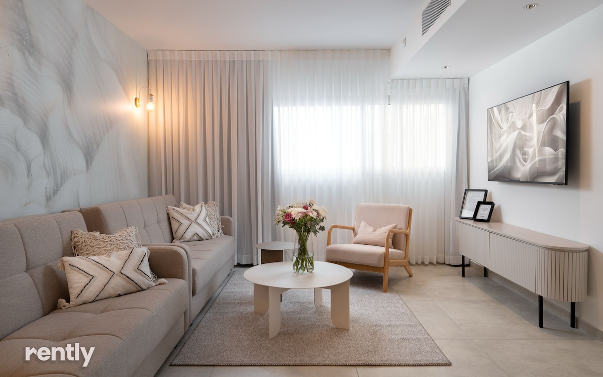 Une escapade de luxe au cœur d'Eilat : une escapade parfaite ! Notre location de vacances de luxe, dans un nouveau complexe-boutique exclusif au cœur d'Eilat. L'endroit idéal pour ceux qui recherchent une combinaison imbattable de confort, de luxe et d'emplacement privilégié. Design moderne et méticuleux : une atmosphère confortable et élégante dans chaque recoin de l'appartement Balcon agréable : parfait pour un petit-déjeuner relaxant ou un verre de vin au coucher du soleil Cuisine entièrement équipée - pour ceux qui aiment cuisiner même en vacances Chambres spacieuses et élégantes - hébergement confortable et de qualité. 🏠 2 chambres spacieuses + salon élégant 💪 Salle de sport entièrement équipée 🚗 Parking intérieur privé 📍 Sur place : 🍽️ Restaurants de qualité ☕ Cafés 🛒 Supermarché
