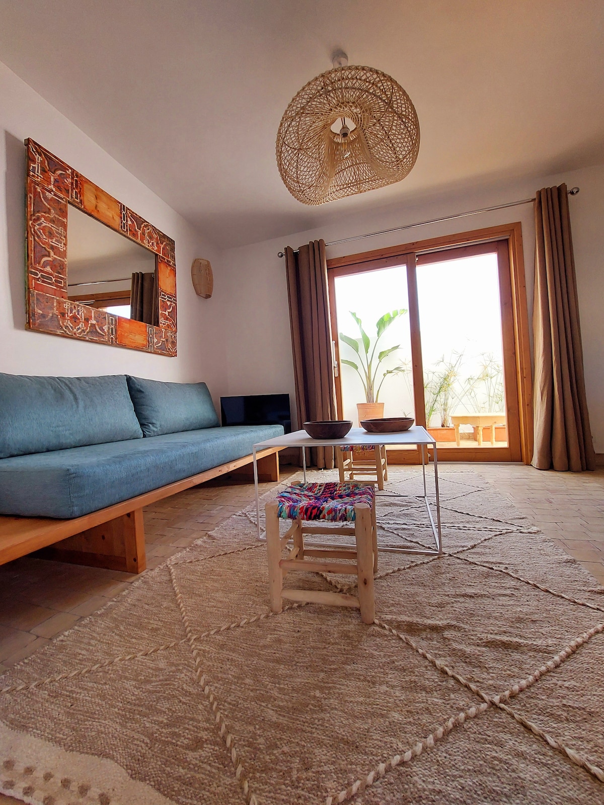 Bienvenue à Dar Aya 2 , appartement atypique de 70 m2 entièrement rénové à l’aide d’artisans locaux dans un style « Beldi chic »où se mêlent confort et décoration raffinée. Chaque détails et objets ont été choisi pour vous faire voyager dans un Maroc authentique. Situé dans un quartier tranquille et proche de toutes commodités vous pourrez vous rendre à la médina et à la plage en 15 minutes à pied. À l’étage , vous aurez accès à une superbe terrasse privative avec vue sur Essaouira.