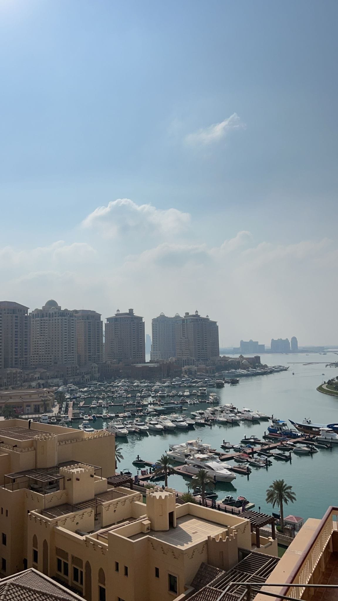 Réveillez-vous avec une vue imprenable sur la marina dans ce spacieux appartement 1BR à Porto Arabia, The Pearl-Qatar. Profitez d'un balcon privé, d'un lit king size, de 1,5 salle de bain, d'une cuisine équipée, de placards intégrés et d'un espace de vie spacieux avec une télévision connectée 65". Idéal pour les couples, les voyageurs en solo ou les voyageurs d'affaires. Supermarché SPAR en bas, plus cafés et commerces à proximité. Comprend une connexion Wi-Fi rapide, un parking, une machine à laver, des draps propres et une sécurité 24h/24. Calme, élégant et à quelques pas de l'eau, votre escapade parfaite au Qatar !