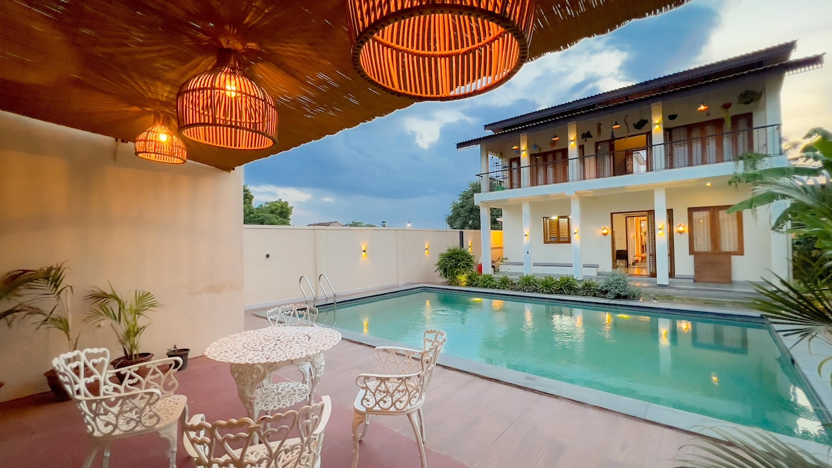 Une villa de luxe et spacieuse de 3 chambres entièrement exclusive avec sa propre piscine privée et des divertissements comme un mini-théâtre, une PS5, un barbecue et des jeux de société, idéale pour les familles et les enfants qui peuvent profiter du luxe de notre piscine en toute intimité. Nous offrons également une variété de jouets de piscine bien entretenus. Le quartier dispose d'agents de livraison de nourriture tels que Swiggy et Zomato et de livraison directe de restaurant sur commande. - Caméra de vidéosurveillance disponible à l'extérieur de la maison pour la sécurité. - Parking privé.