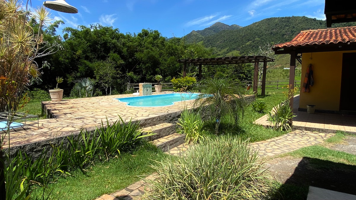 Refuge das Juçaras est une maison forestière typique, rustique, propre, cosy et entourée de pierres géantes qui rendent le terrain enchanté. La maison se trouve dans une zone de protection de l'environnement, intégrée dans la nature, y compris des palmiers juçara, des fougères et d'autres beautés de la forêt atlantique. Au fond de la terre passe la rivière Alambari cristalline, qui sépare nos terres du parc national d'Itatiaia. La maison est dans une région proche des puits d'émeraude de Serrinha. C'est un endroit enchanté !
